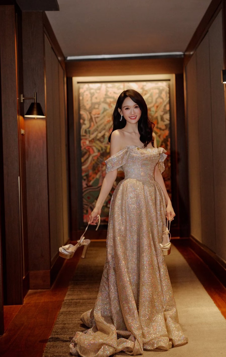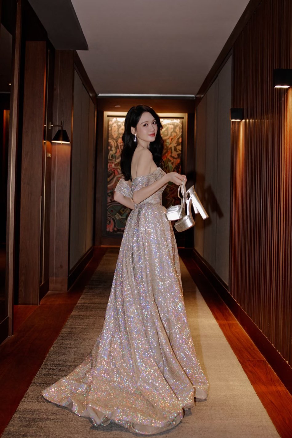 陈乔恩手拿高跟鞋回眸一笑,太有气质了~