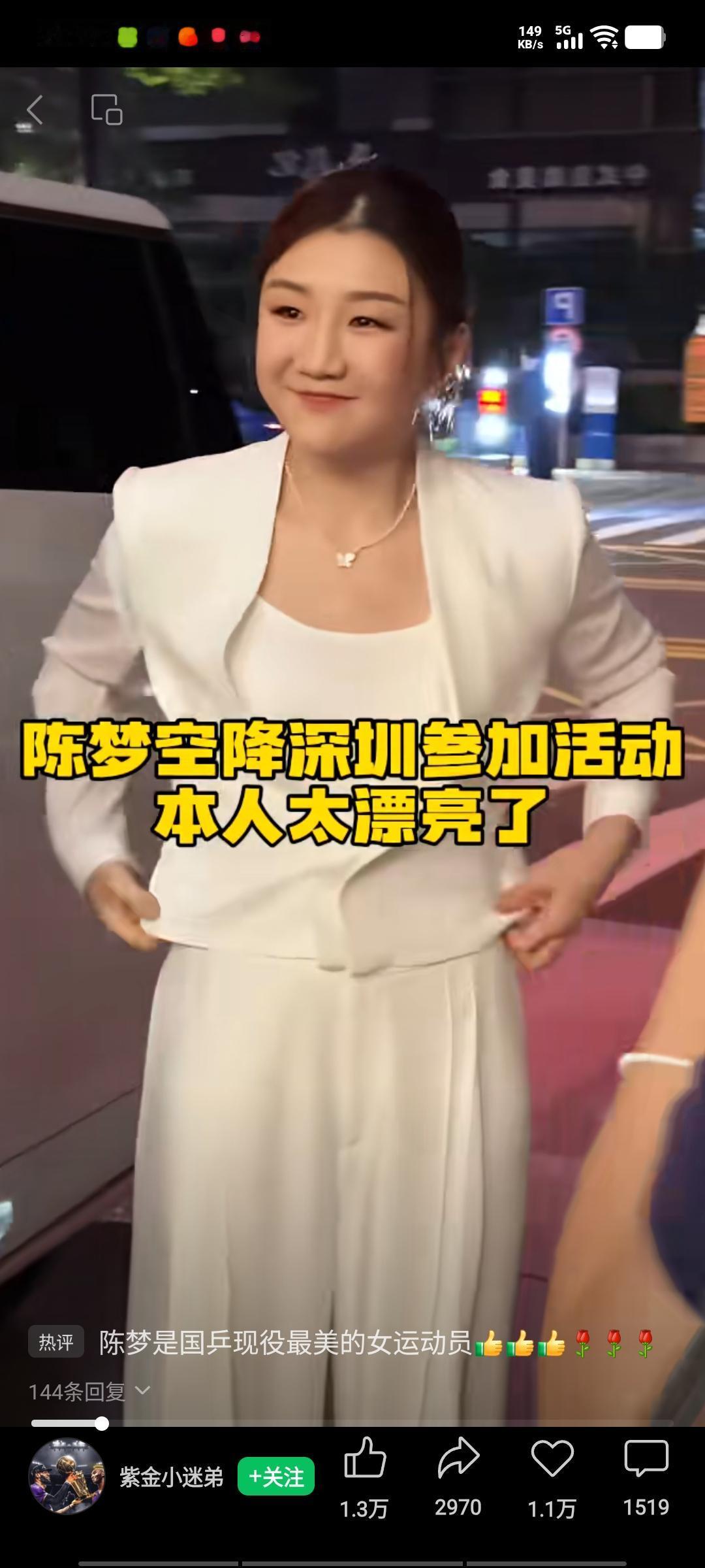 乒坛第一美女陈梦,昨日于深圳参与了商业代言活动。她身着一袭白衣,显得精神抖擞。看