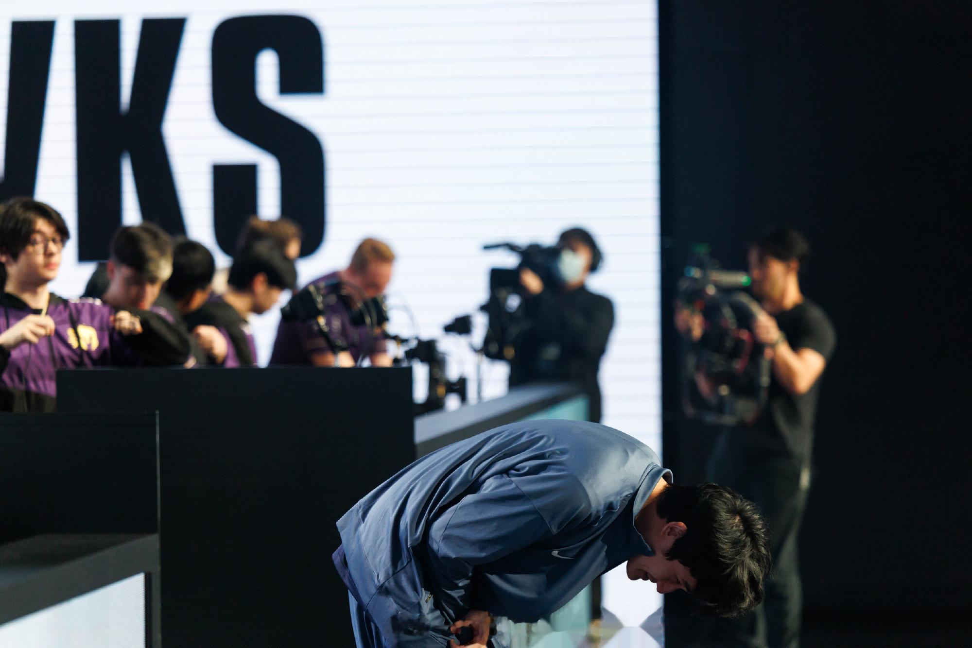 第三局的比赛即将开始前,karsa往舞台上走,看到我停了下来,说,希望还能多见几眼村长。