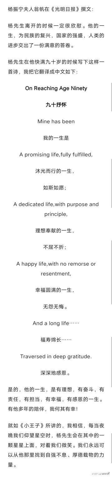 翁帆的这篇悼文,倒是简短而不失深意。 说实在的超出了想象,本以为是要发万字长文的。倒不知怎的,却想起了陆小曼:徐志摩驾鹤后,陆小曼花了很长一段时间整理徐志摩的文稿,也算为后世留下了点什么。 真正的悲痛从不是辞藻的堆砌,翁帆的短悼文里,每一个字都藏着二十多年的陪伴重量。那些没说出口的话,比长篇大论更戳人心窝,这才是极致情感的克制表达。 陆小曼当年的坚守同样动人,放弃奢靡生活,闭门整理文稿,把对徐志摩的思念都融进了字里行间。她用半生时光,守住了诗人的精神遗产,这份执念远比情话更长久。 有人总觉得“悼念要隆重”,却忘了最好的纪念从来因人而异。翁帆陪杨振宁走过人生最后旅程,她的悲痛藏在日常点滴里,短悼文不过是这份深情的冰山一角。 对比当下动辄万字的“流量式悼念”,翁帆的克制更显珍贵。没有刻意煽情,没有博眼球的表述,只用最朴素的文字,完成对爱人的告别,这才是对逝者最大的尊重。 陆小曼与翁帆,隔着近百年的时光,却有着相似的深情。一个用整理文稿延续思念,一个用简短文字定格回忆,不同的方式,同样的厚重。 爱到深处无言,真正的怀念从不需要向外界证明。翁帆的短悼文,是属于她和杨振宁的私人告别,无关他人期待,只关真心。 各位读者你们怎么看?欢迎在评论区讨论。