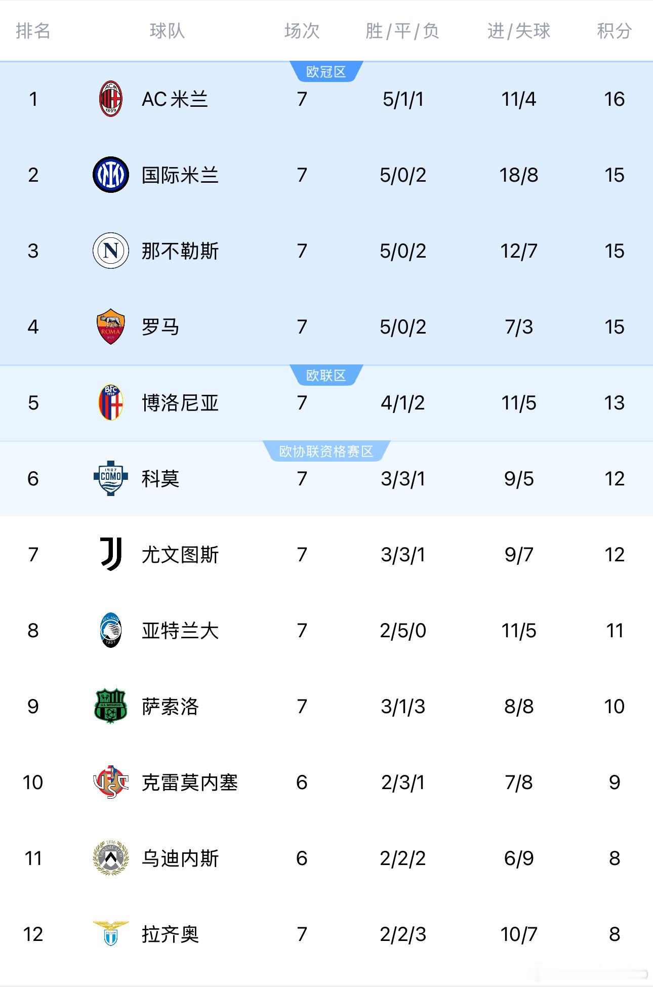 一觉醒来,米兰战胜佛罗伦萨剑指冠军,单线果然还是有很大优势的,你妇掉出欧战区,目前排名第七。[泪奔]