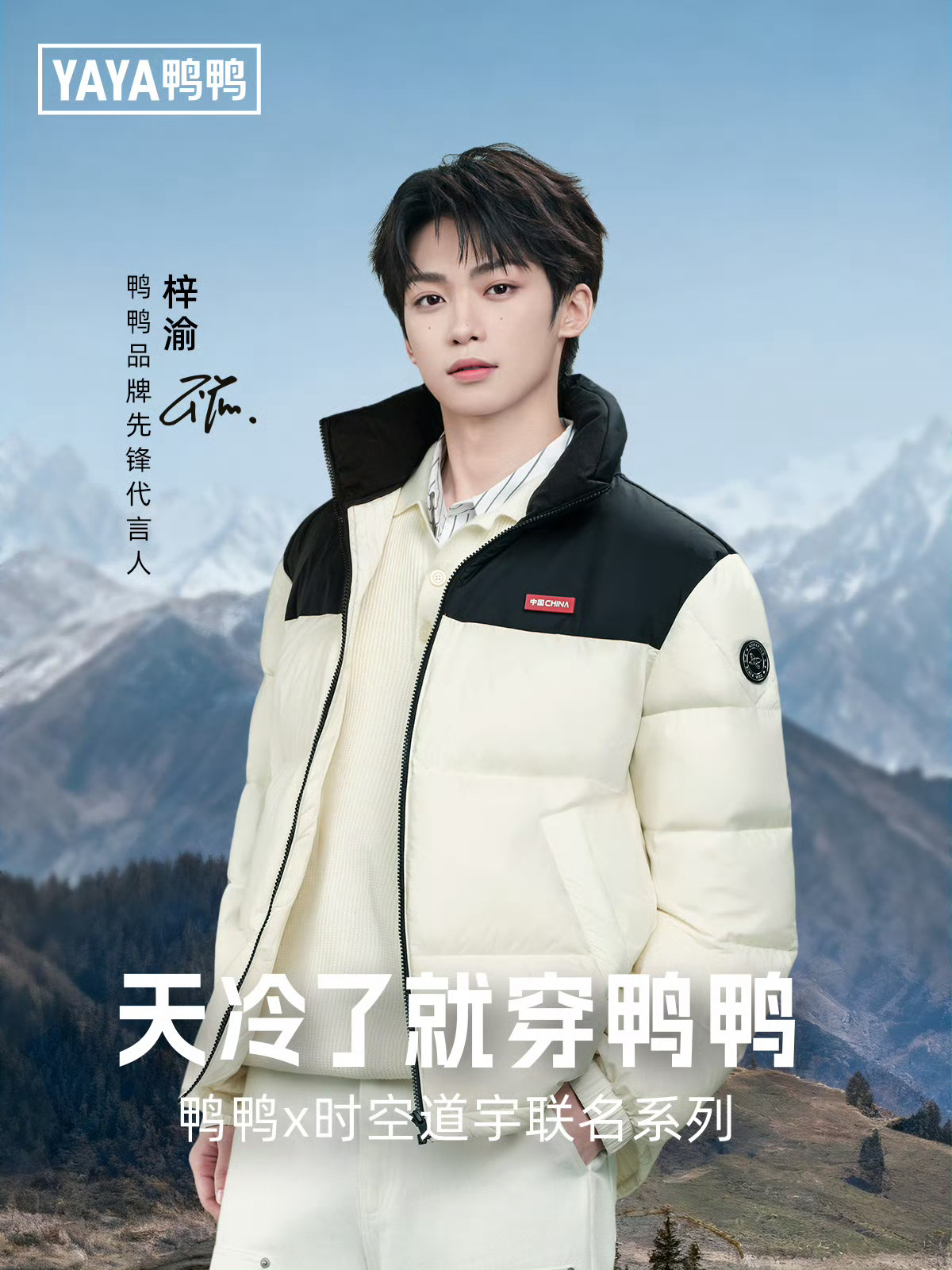 喜事连连,这个冬天有温度——❶成毅续约雪中飞羽绒服。❄️❷梓渝代言鸭鸭羽绒服,同