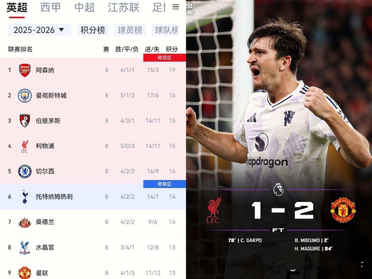 曼联:计划有变,准备争冠!要不是B费那个两个射丢的点球,曼联现在起码15分-17分了,早就在争冠集团了。 不过也没关系现在曼联也只落后榜首两个胜场而已,一切皆有可能。 必须承认曼联这赛季的进攻比上赛季好多了,但防守问题还是很大,今天要不是那几个门柱,早就输了。只能说阿莫林的命是真硬啊。 不知不觉曼联已经打过了阿森纳,切尔西,曼城和利物浦了。阿莫林8轮打了四个big6,这积分,可以了。 这回终于在积分榜上半区看到了曼联了。我估计今年的英超乱不乱是曼联说了算!