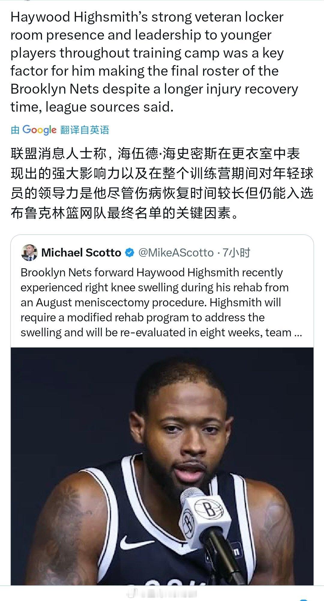 可爱的半月板切除手术后,右膝出现肿胀,需要8周后再评估。但是篮网看中他的领导力,愿意等。