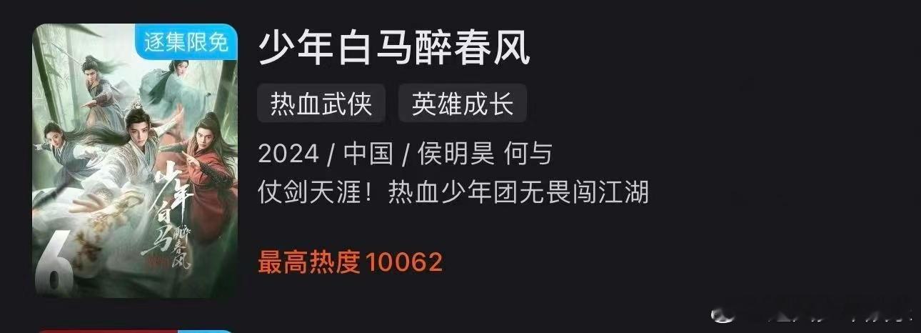 侯明昊扛剧不是说说而已侯明昊的《护心》、《少年白马醉春风》每一部都能破万热度,