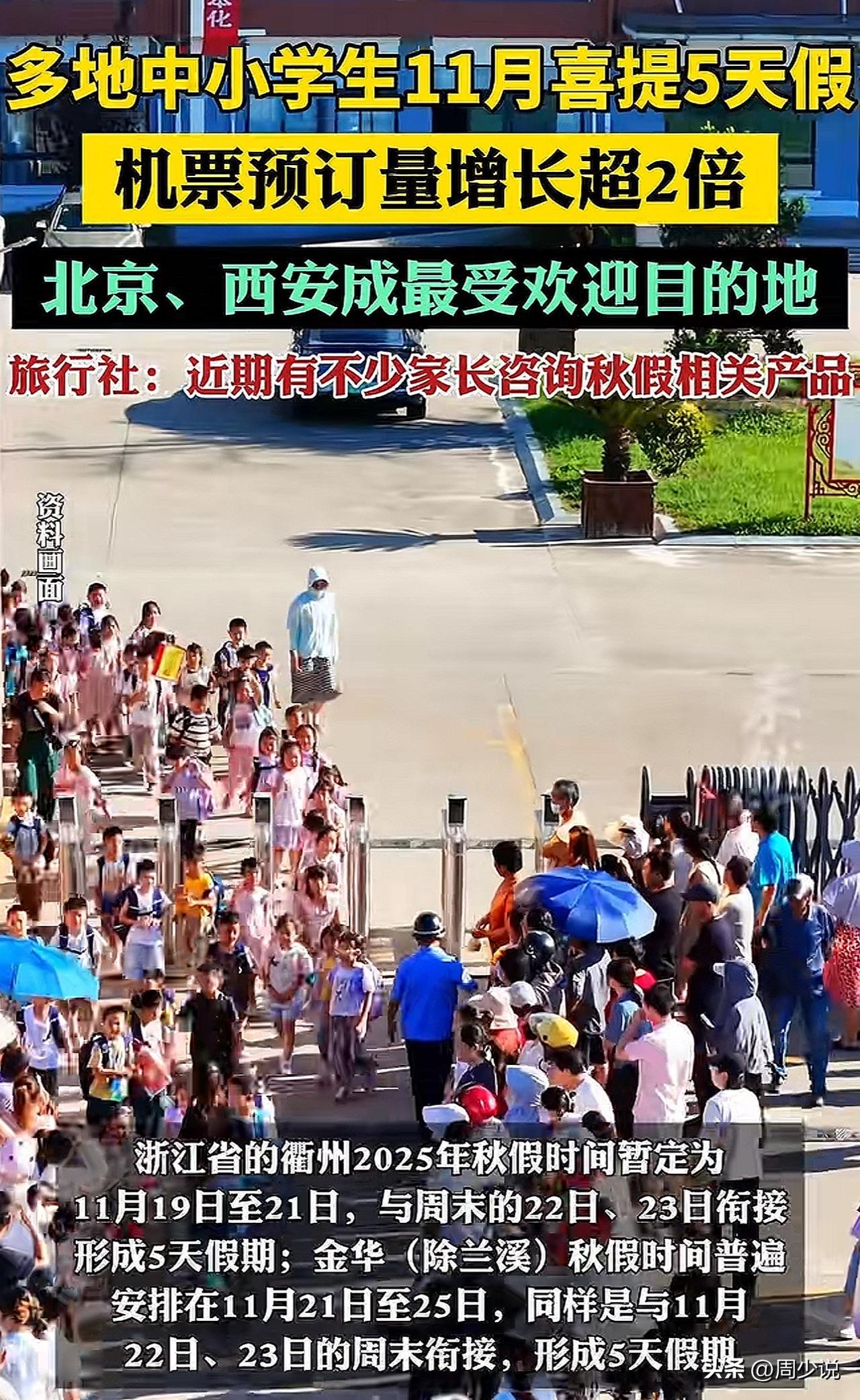 #多地中小学生11月喜提5天“小长假”#近日,多地中小学生11月喜提5天“小长假