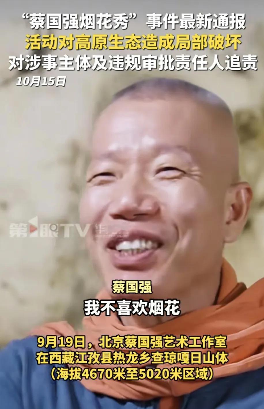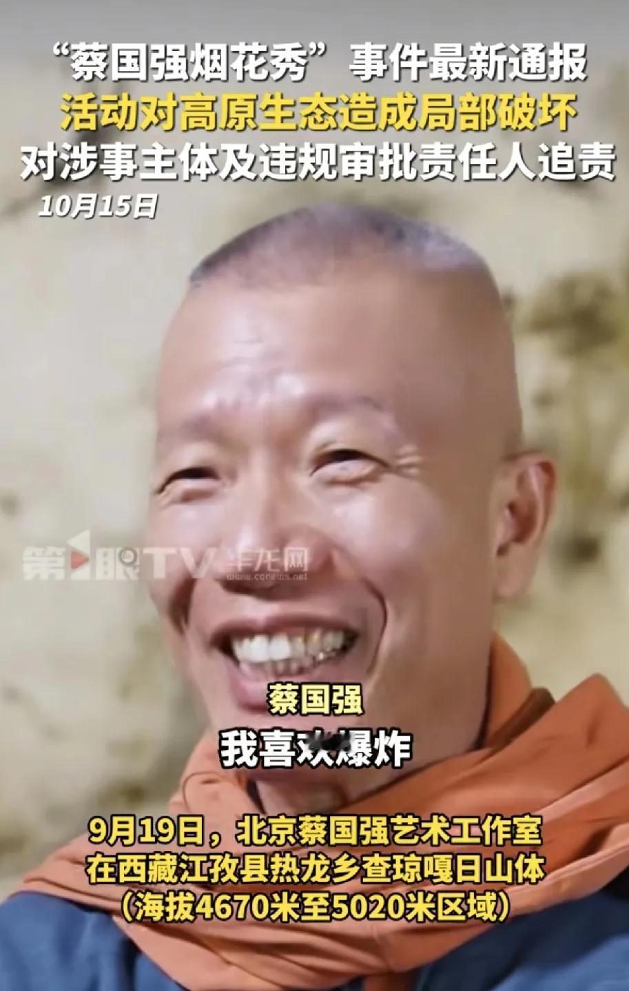 蔡国强就像那地主家的那啥,然后一帮子人出钱的出钱,开道的开道陪他瞎胡闹,他说,他不喜欢烟花,喜欢的就是爆炸,这完全就是个人的喜好行为,这完全和环保和艺术不搭边嘛,陪他瞎胡闹的难道不知道,这些都是高智商人才,结果引起了公愤,这下子出钱的,开道的尴尬了。