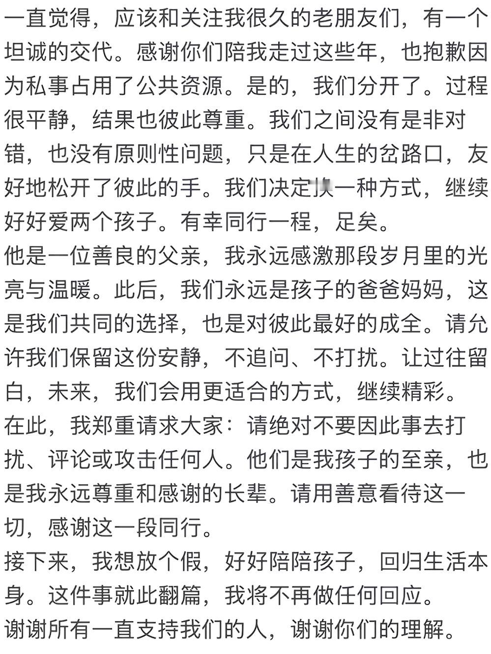 一开始就觉得她公婆不太看的起雪梨,她公公特别明显,婆婆是个笑面虎。 逢场作戏久了也不想装了,现在家里人也有名气了,可能不再需要雪梨了吧! 看雪梨发的声明,能看出婆家是主导火索,他们是孩子至亲的这句话,还再给他们保留体面。其实他们两个人生活里肯定也有小矛盾,毕竟女强男弱谁能挣钱谁主导家庭地位,可是两个人再怎么吵也就是床尾和,但是一旦牵扯到父母可能就严重了,自己的付出和委屈不被善待,再有一个拎不清的男人,平时的点滴放在一起积压出来,再加上两个人谁都不让谁年轻气盛,就不好收场了。能看出雪梨有在挽回,直到潘兵说了后分开她才回复,而且把置顶一家四口隐藏,和潘的其他视频都还保留。 一个顾家能挣钱爱孩子的女人,是不舍得让孩子没有完整的家庭的,更何况付出多的那个。