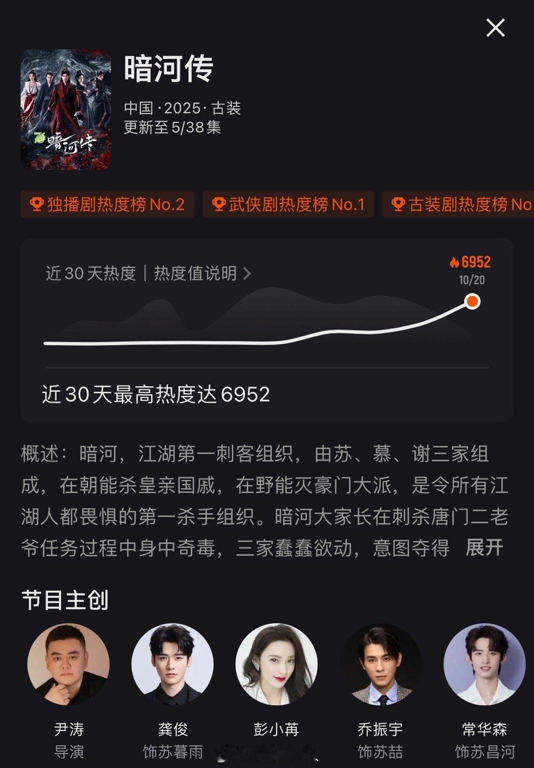 家人们!龚俊、彭小苒领衔的《暗河传》今天终于开播了,光看阵容——还有乔振宇压阵,