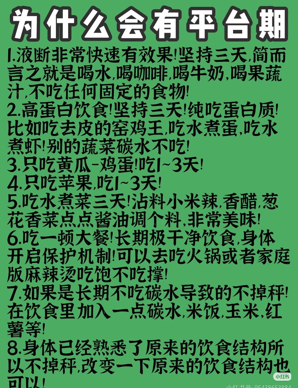 平台期不是卡住了,是身体在偷偷攒钱。 你越饿,它越省。 肌肉不放,脂肪不烧,连水都死死攥着——这不是懒,是生存本能。 国家刚出的指南说:连续14天体重不动、体脂不降,别硬扛,赶紧调。 早餐加碗燕麦配鸡蛋,别怕多吃点。 蛋白每天每公斤体重吃够1.2克,鸡胸鱼虾轮着来,别光吃素。 白米饭换成糙米、鹰嘴豆,先吃一盘青菜再动主食,血糖不蹦,脂肪才敢动。 有氧别再慢跑了,上HIIT,跳绳1分钟疯冲,1分钟喘气,来回10轮,燃脂效率翻倍。 每周3次力量训练,深蹲、俯卧撑、硬拉,别怕累,肌肉多一斤,基础代谢就多烧100大卡。 走路也别小看,手机设个500步提醒,一天多走3000步,等于白捡一盘鸡胸肉的热量。 别拖到第六周还死磕。 真不动了,去医院做场代谢检查,甲减、多囊不是玄学,是能治的病。 别信“再坚持一下”,那不是毅力,是跟自己过不去。 身体不是机器,它懂生存。 你给它新信号,它才肯换模式。