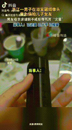 浙江,男子在浴室藏摄像头,目的竟然是为了偷拍儿子的女友。 据重庆社会与法频道报