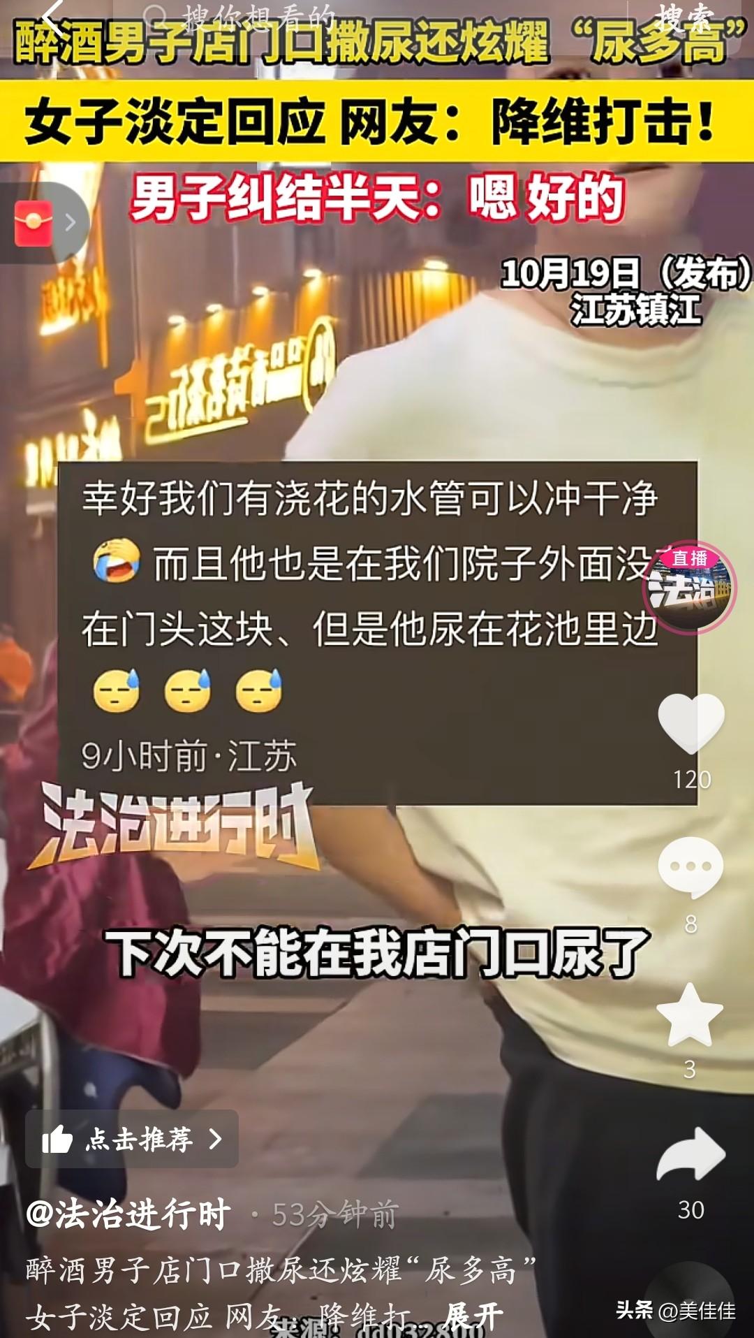这下不能瞒了!全网都想知道你“尿的有多高”! 就一醉汉,跑人店门口撒尿,还跟女老板嘚瑟:“你知道我尿的多高?” 女老板也不跟他掰扯,笑着说:“我不管你尿多高,下次别在我家门口尿了,知道了没有?” 醉汉迷迷糊糊应了句:“好。” 结果没两秒又犯轴:“但是,你知道我尿的有多高吗?” 你说这醉汉是不是喝懵了?要是你遇上这种人,会咋回他?