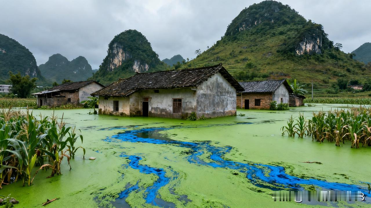不得了!广西百色洪水变绿问题严重。10月19日受台风影响,百色多地暴雨成灾,部分村子积水围困超十天,庄稼全泡汤。这洪水变绿是蓝藻疯长所致,当地农业大量用农药化肥、生活污水乱排,再加上天热,给蓝藻创造了生长条件。绿水黏糊糊,普通抽水泵抽不动。看看其他地方治理也是困难重重。而百色既没解决方案,又没钱买设备,只能干等着。这洪水变绿对村民影响极大,居住环境差,断水断电、通信受阻,孩子不能玩水,家庭没了收入。更要命的是绿水有毒,土地三年可能无法耕种。这哪是水灾,分明是土地在求救啊! 展开 广西百色洪水变绿问题严重,土地在 “求救”!10 月 19 日,受台风 “桦加沙”“博罗依” 和 “麦德姆” 叠加影响,百色多地暴雨成灾,部分村子积水超十天,洪水还变绿了。原来是蓝藻疯长,有网友发布 “百色有村子积水变绿,正在变成湖水” 的视频引发热议。 百色市水利局工作人员称是水中杂质增加、内涝时间长,长了草和青苔才变绿。百色水利电力设计院杨丽梅分析,当地属喀斯特地貌,极端降雨使地下水位抬升,地下河 “反涌”,洼地消水洞堵塞,排水不畅形成内涝。 洪水变绿对村民影响极大,土地可能三年无法耕种,而当地治理困难,只能等待水位慢慢下降。其实,像饶平县探索城乡供排水一体化运营改革,从架构、资产、融资等多方面着手治理污水,或许能给百色治理洪水变绿问题提供一些思路。