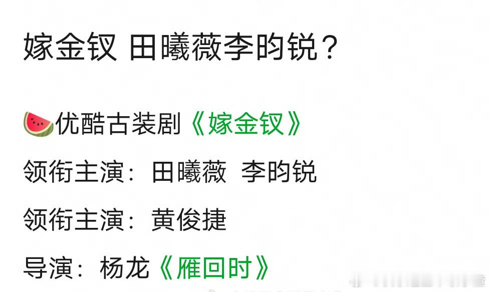 👖《嫁金钗》:田曦薇、李昀锐(平番)、男二黄俊捷