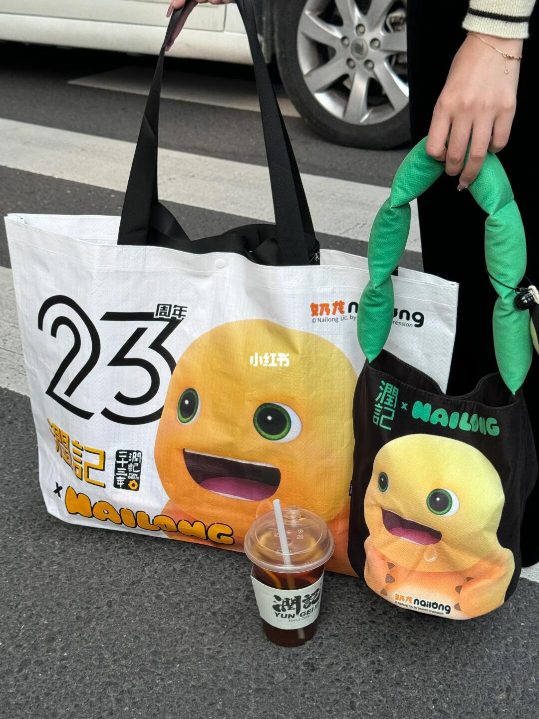 一直去吃的润记居然23周年了! 这次和超可爱的小奶龙联名了🥳 表情包出现在了编织包和水桶包上 简直太显眼包了哈哈~ 最爱的冻柠茶也有了地标标志 又好喝又好玩 . 苏州的润记都可以领取!! 我不允许任何人错过小奶龙~ .