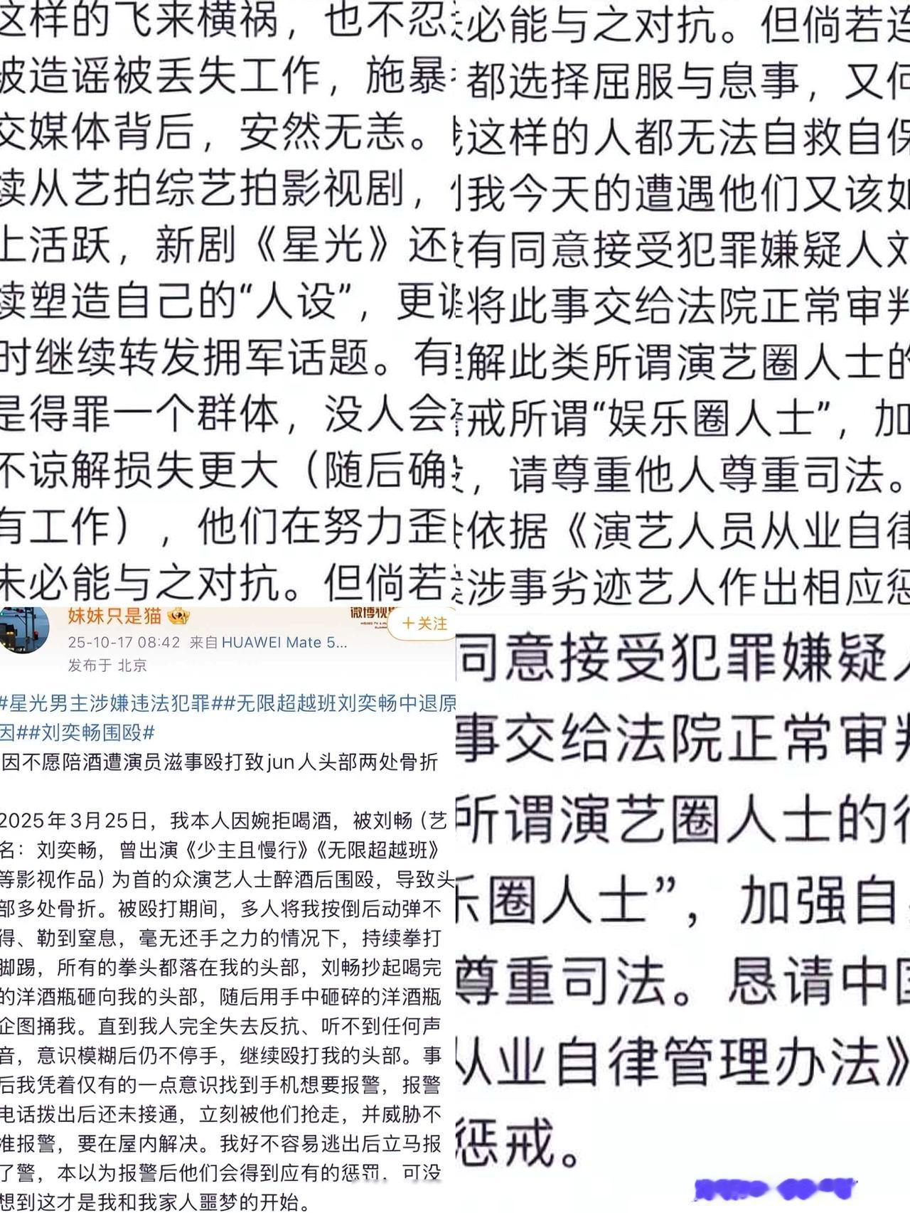 再现法制咖! 知名男星酒后殴打军人, 致头部骨折,多位艺人被牵扯! 你听说了吗? 那个演过《少主且慢行》的刘奕畅, 出大事了! 据说他前不久喝多了酒, 在酒桌上硬逼一个现役军人陪酒。 人家军人不喝, 他居然抄起一个洋酒瓶子就砸了过去, 把人打得头都骨折了! 打完人还不算, 他还抢了人家手机, 威胁说别乱说话, 想私了让对方写谅解书! 这事儿本来想压下去, 但军人身份特殊, 部队已经介入调查了! 聊天记录、 语音证据都有, 据说群里还有人说"人已摆平",这话都被截图了, 现在网上吵翻了天! 更让人无语的是, 就在大家都以为他要凉了的时候, 他居然还在发新剧宣传! 这已经不是简单的明星耍大牌了, 是触碰了底线! 现在大家最关心的, 不只是他会不会被法律制裁,更是想知道到底是谁在背后给他撑腰, 敢这么明目张胆地压事! 这事儿确实挺让人愤怒的!