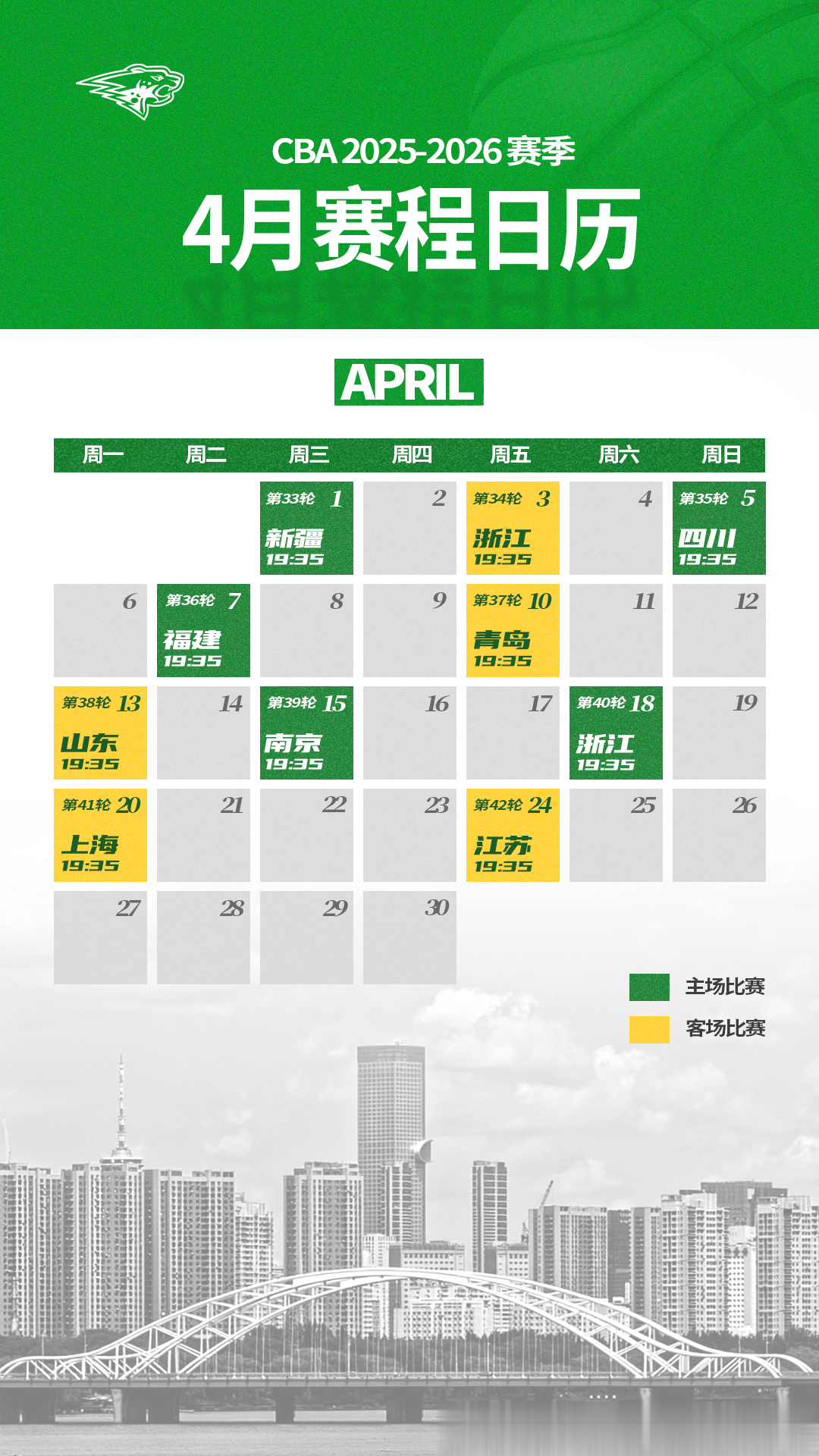 辽篮官方今日更新社媒,分享球队新赛季赛程表。