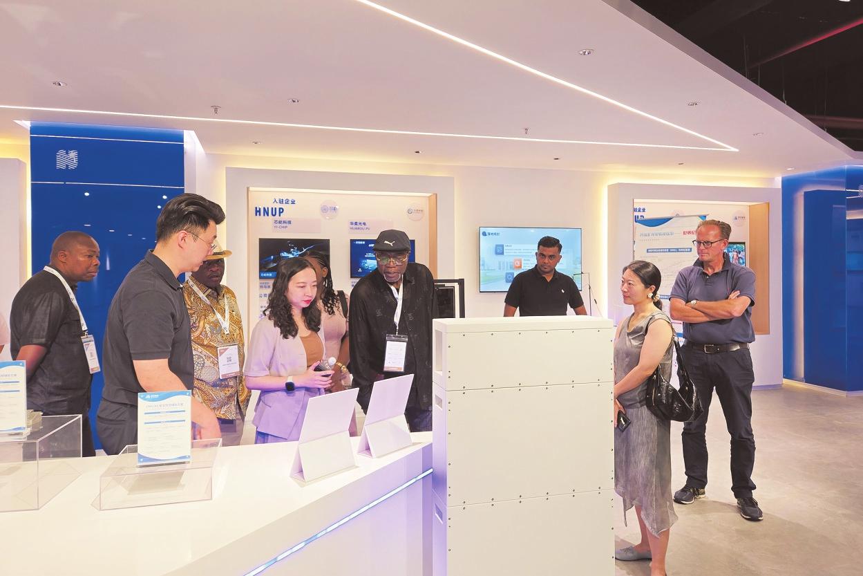 海南大学科技园落地海口复兴城国际数字港后,为秀英区科技创新注入了新动能。日前,外地考察团走进海南大学科技园,实地参观入驻企业自主研发的无人机系列设备。本报记者石中华通讯员杨颖摄