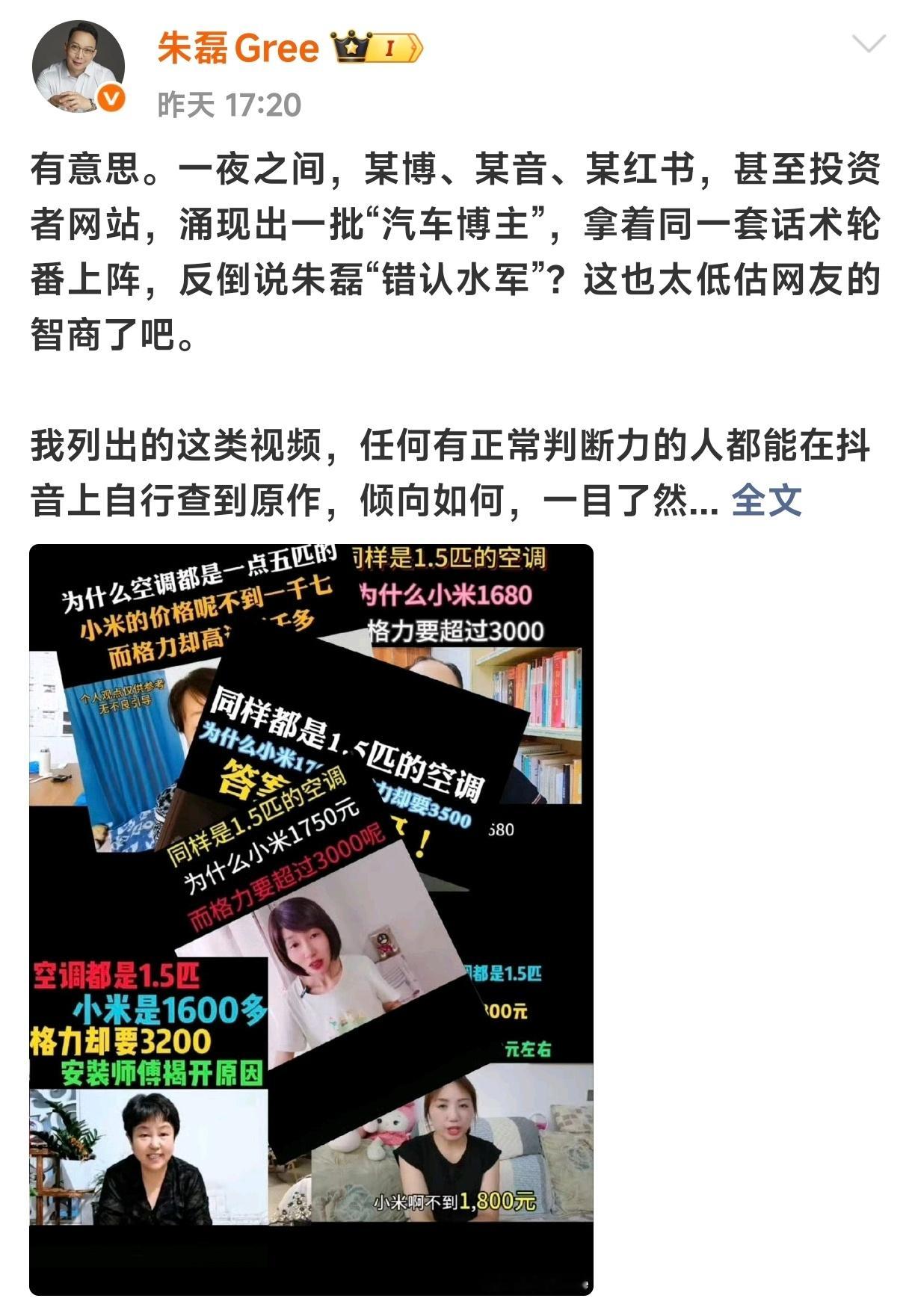 格力朱总一定要尽快把证据公布,全社会都应该打击黑公关行为,这是造福行业的举措,支持朱总