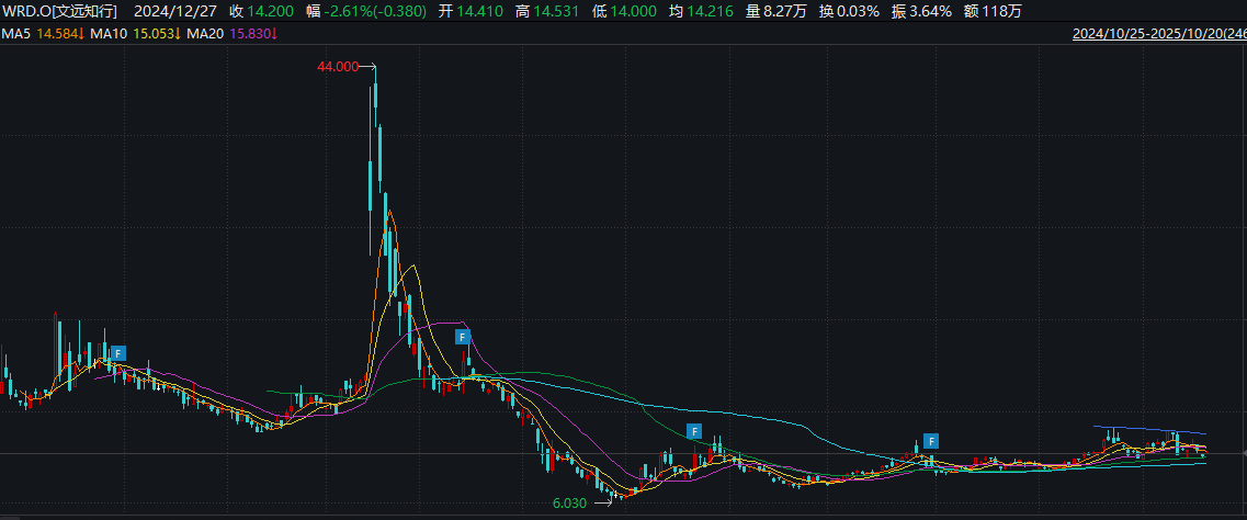 文远知行则经历了“冲高回落”的尴尬境遇。2025年2月,英伟达向美国证券交易委员会(SEC)提交的13F报告显示,截至2024年第四季度末,英伟达持有文远知行174万股股份,这一重磅消息引发市场狂热追捧,公司股价一度冲高至44美元/ADR,总市值突破110亿美元,创下上市后的市值峰值。然而,好景不长,2024年公司收入承压且亏损持续扩大的财务数据暴露了商业化短板,叠加摩根大通发布报告调减其2025年的收入及毛利预期,股价开始持续承压下行。截至10月20日,文远知行收盘价仅为10.37美元/ADR,较IPO发行价下跌33.1%,美股市值缩水至32.4亿美元,与小马智行的市值差距从上市初期的3亿美元大幅拉大至37.3亿美元。以截至10月20日的股价涨跌幅计算,两家企业的股价分化幅度已超80%。