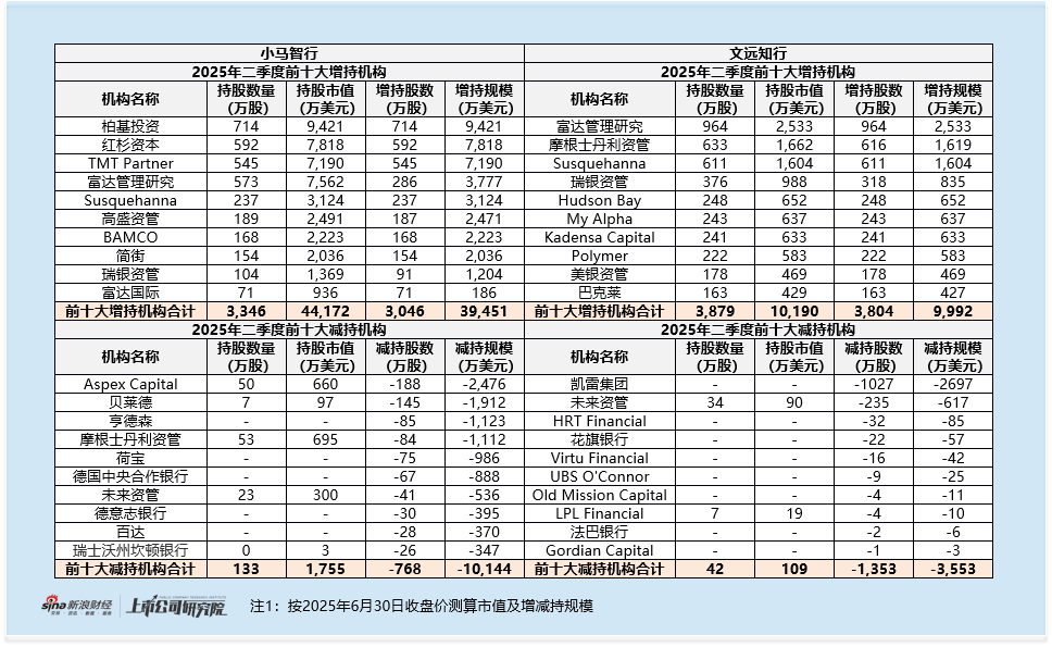 反观文远知行,2025年二季度增持机构合计增持股数对应的规模仅1亿美元(按2025年6月30日收盘价测算),不仅规模远低于小马智行,增持机构的质量也存在明显差距。其前十大增持机构包括HudsonBay、MyAlpha、Kadensa、Polymer等对冲基金,这类基金通常具有持有期限短、交易频率高的特征。更值得注意的是,凯雷集团在2024年四季度同时买入小马智行及文远知行股份后,于2025年二季度选择清仓所有文远知行的股份,仅保留小马智行持仓,这一操作进一步凸显了机构对两家企业长期价值的差异化判断。