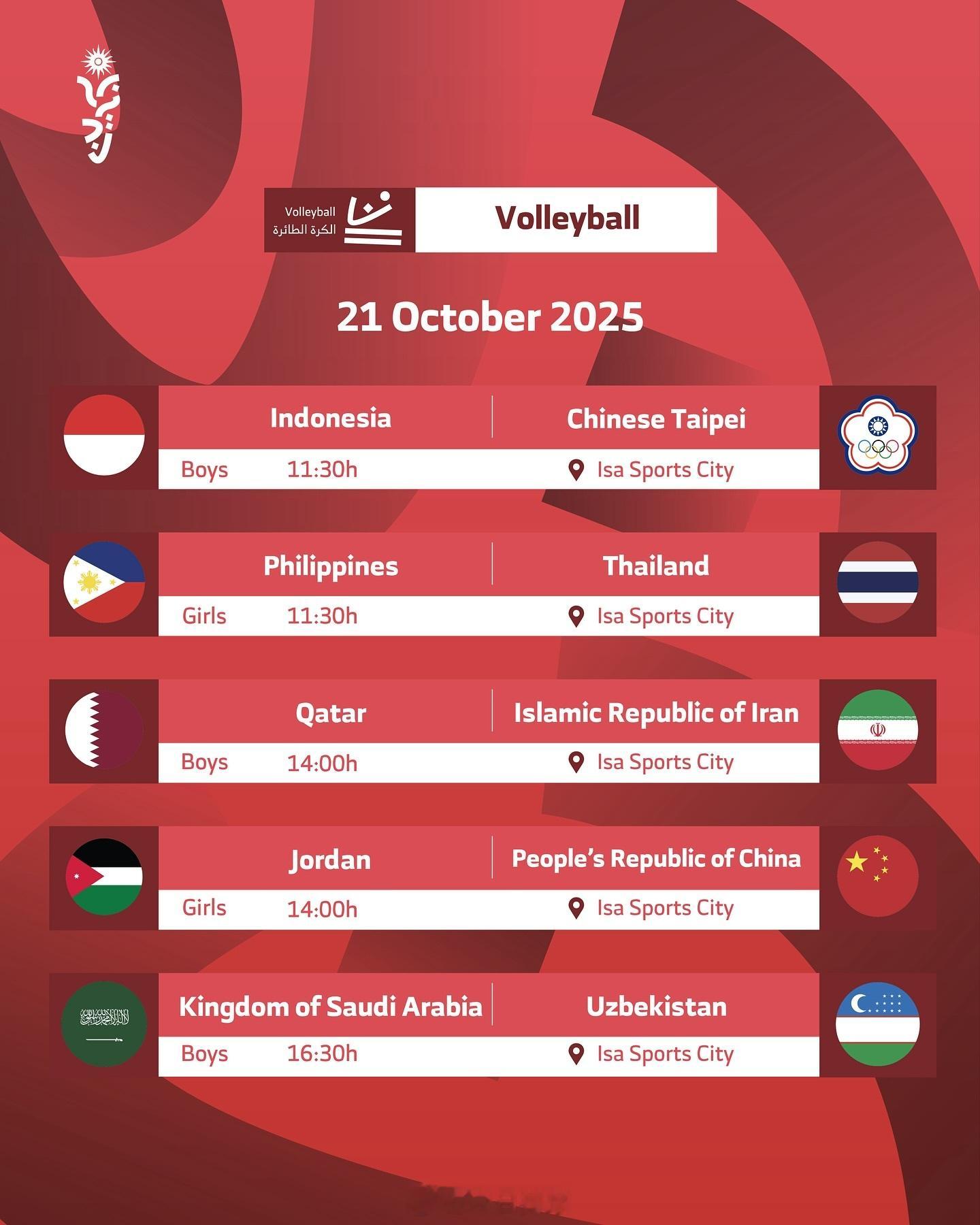 2025年亚洲青年运动会 女排小组赛,北京时间今天19:00,B组的中国队将迎战约旦队。