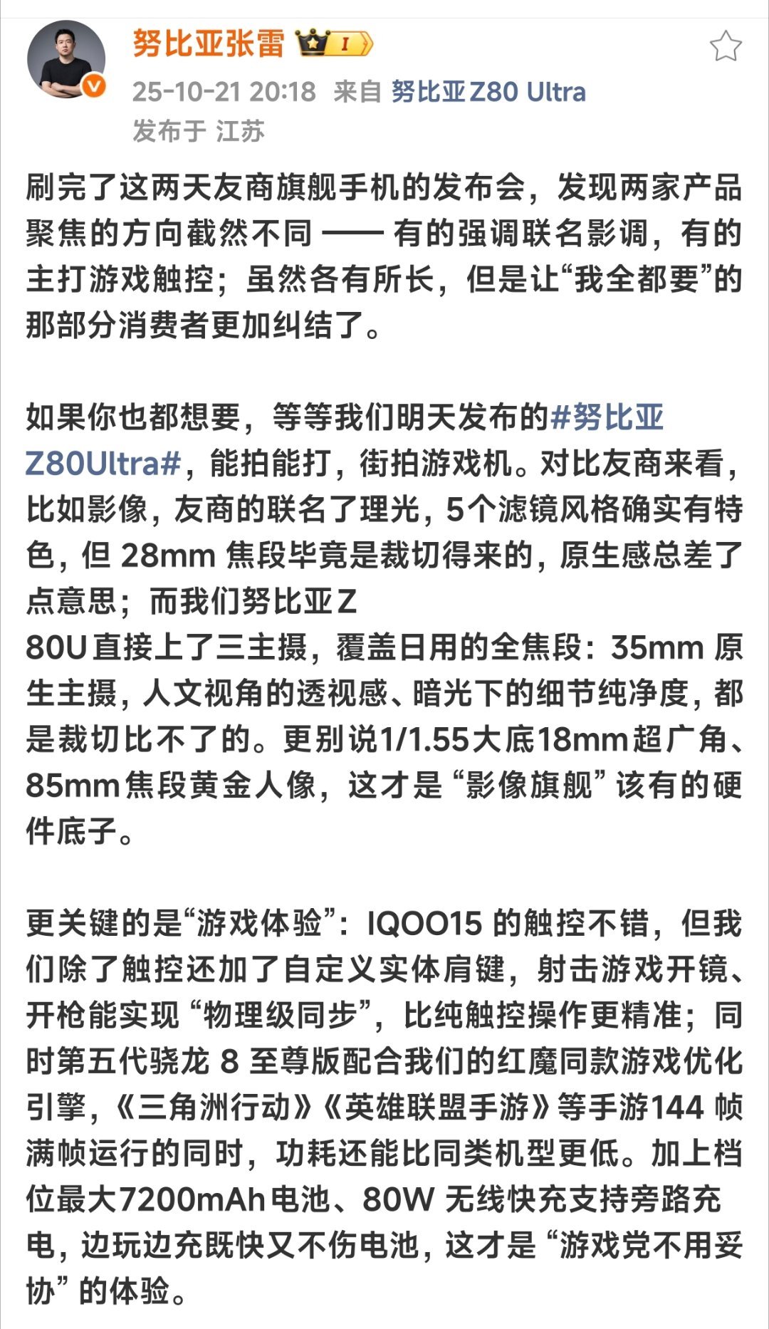 这些机器里面,我个人认为最特立独行的还得是努比亚,这个真全面屏的外观,这个独特的后盖设计,也把三主摄堆上去了,超广角也是5000万像素的大底,影像算法也强。另外就是张雷总提到的,这次在性能释放上做的也很好,玩游戏的体验更上一层楼。