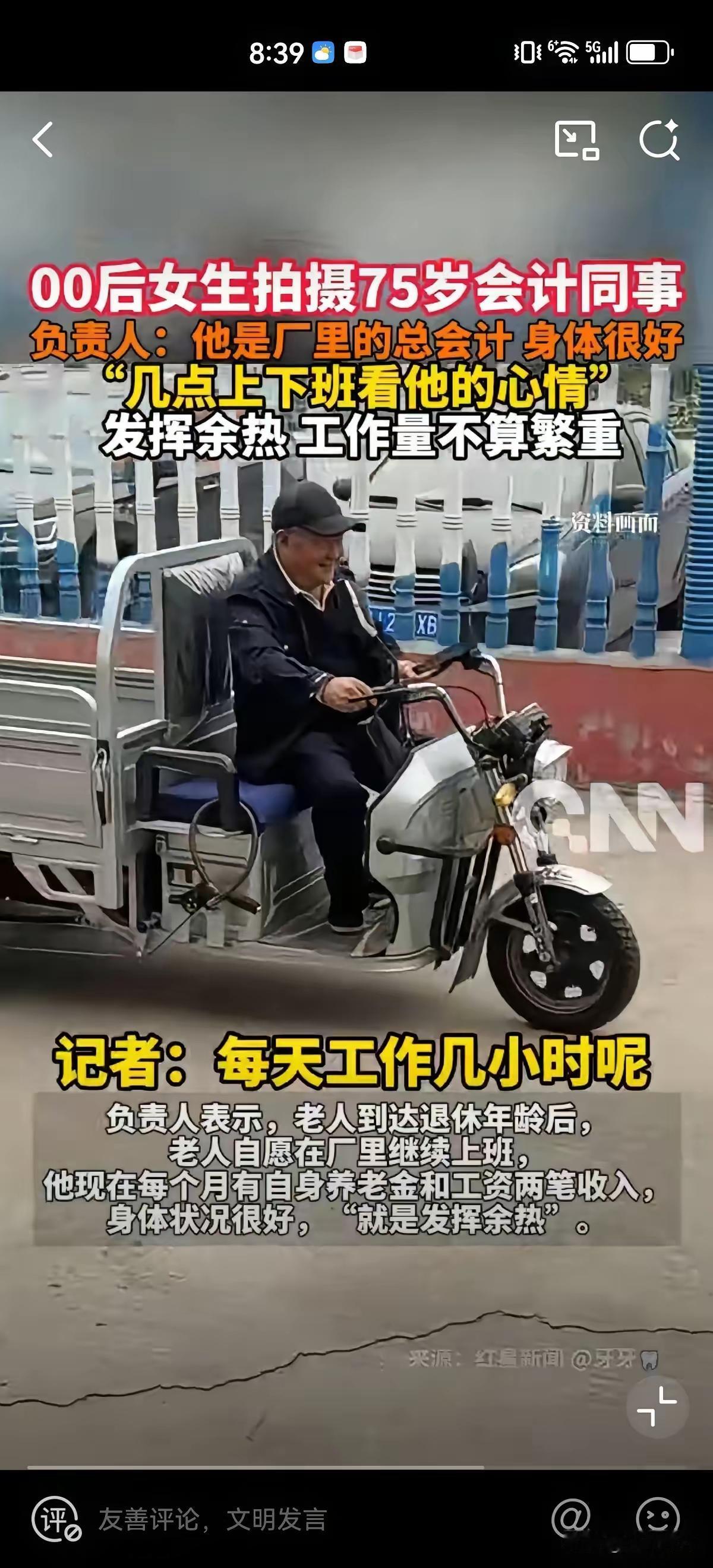 75岁老会计走红这事太戳人了!镜头里他核对账目时眉头微蹙,讲知识时一笔一划在纸上演算,闲了还会摸鱼下象棋,下班开着“老头乐”乐呵呵回家,完全没有“班味”。00后女生的镜头没有猎奇,全是真心的敬佩,难怪网友说“这是理想职场关系”。老一辈的坚守和年轻人的尊重,凑在一起就是最动人的职场画面。