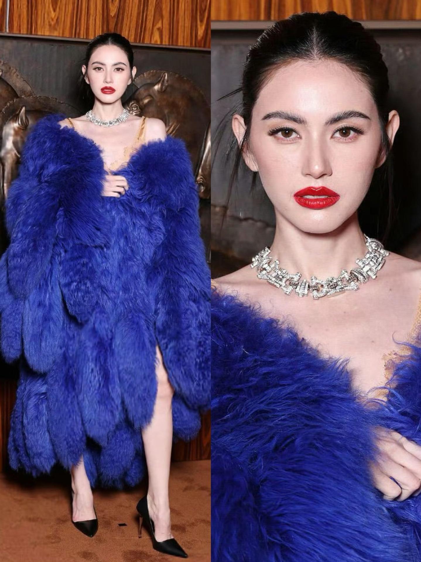 刘亦菲把死亡玫粉穿出了定制款的感觉,这种颜色普通人穿上分分钟黑三度,她居然能穿出