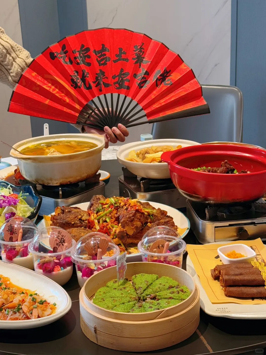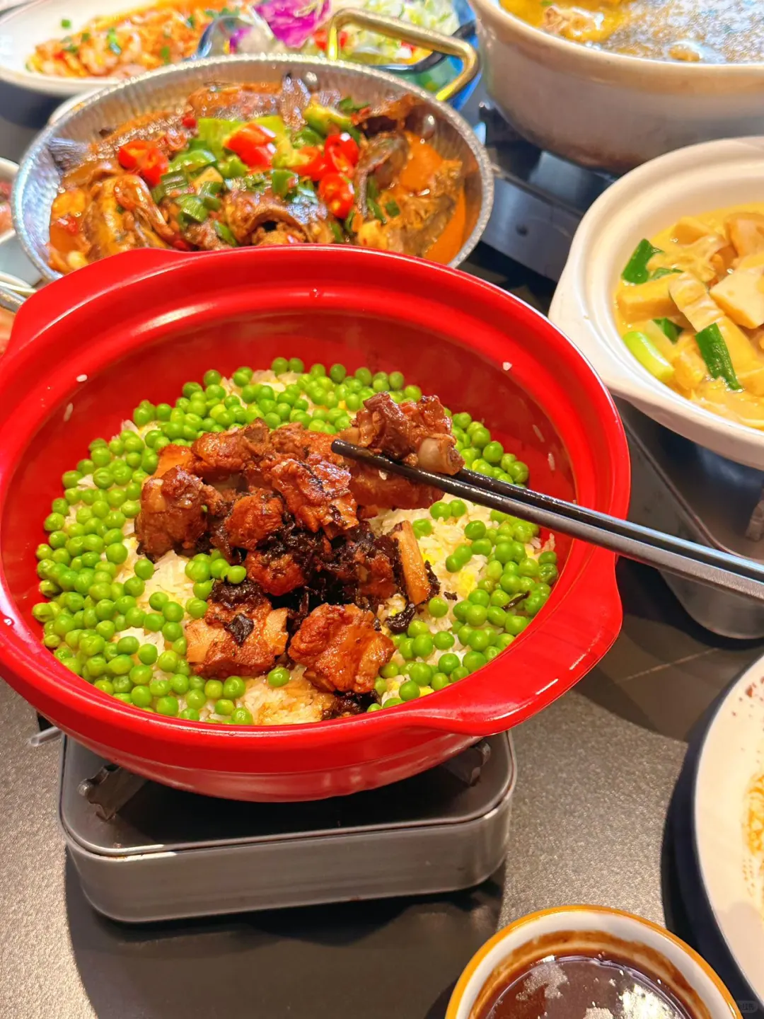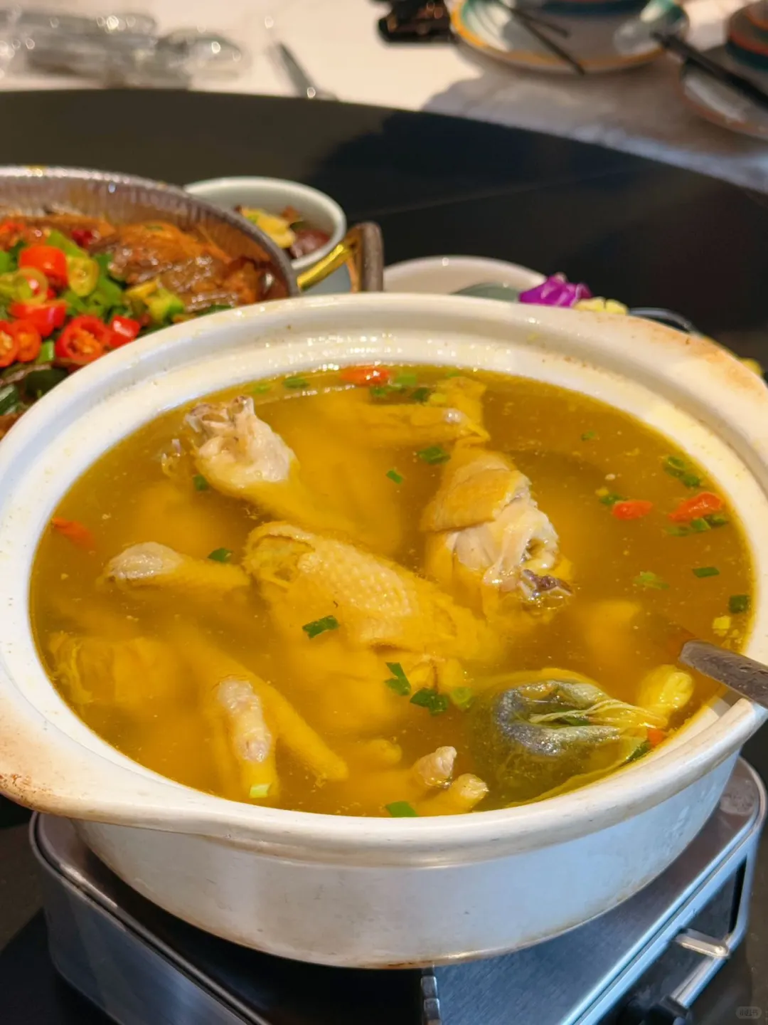 😄个人喜欢土鸡煲(老人孩子也爱吃),还有仔排拌饭和剁椒鱼头,对了✨干锅黄牛肉也敲下饭~