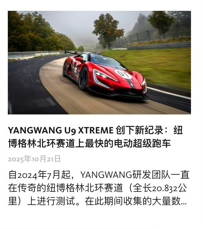 仰望U9X极速圈速双第一纽北官网正式官宣仰望U9X的圈速“全球最速量产电车”仰望