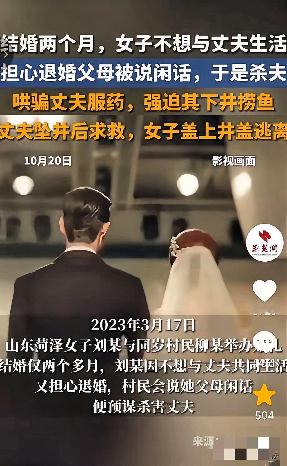 同村发小结为夫妻,竟为“不丢人”痛下杀手?这心也太狠了! 同村长大、知根知底,甚至可能一起玩泥巴长大的两个人,结了婚才俩月,就因为不想过又怕退婚丢人,想出这种恶毒法子害丈夫,真让人后背发凉! 先骗喝了酒的丈夫吃6片“醒酒药”(其实是安眠药),再哄他下井抓鱼,等丈夫求救时不仅不救,还直接盖紧井盖——这哪是夫妻,分明是披着熟人外衣的恶魔!她怕的哪里是父母被说闲话,分明是只在乎自己的脸面,把发小的命当成了摆脱婚姻的“工具”。 法律判了死刑是她应得的,但更该让人警醒:婚姻里合不来可以好聚好散,连从小的情分和基本的人性都能抛掉,这种自私到极致的人,真的太可怕了。你身边有没有见过这种为了私欲不管不顾的人?评论区聊聊你的看法!