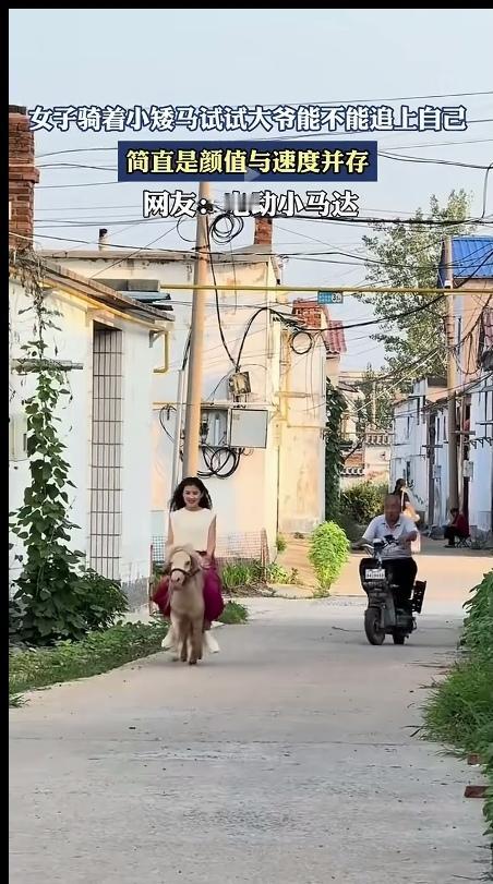 你是玩开心了,就是可怜了小矮马!女子骑着小矮马,跟骑电动车的大爷比赛,看看是小矮