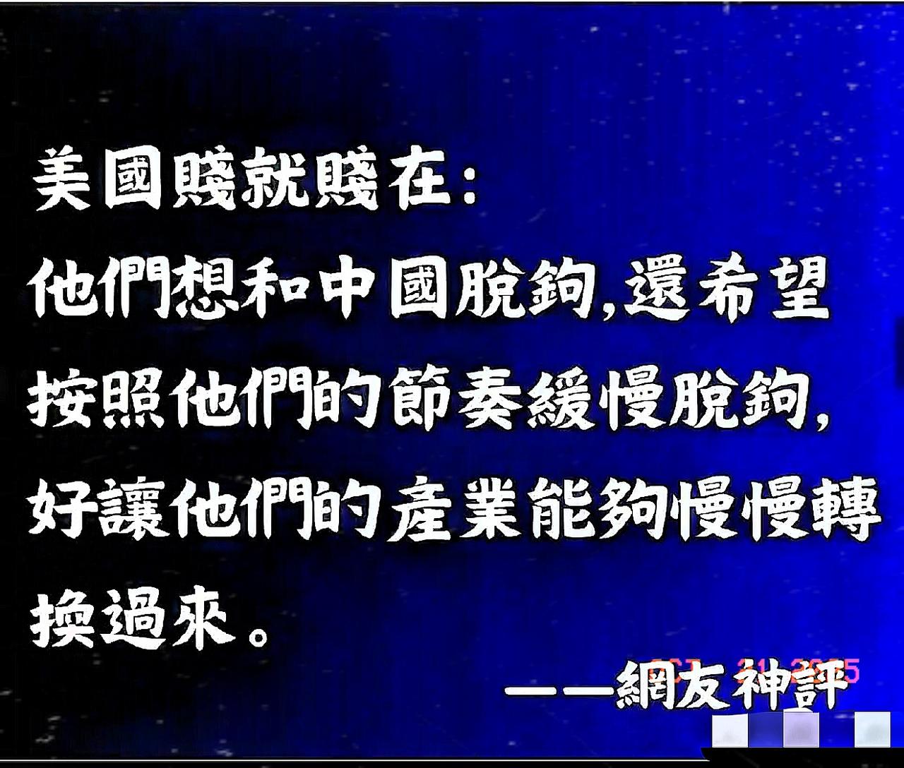 大公报转载了中国网友对美国贸易战的评价。 真的不得不佩服中国网民的素质和眼界之高,民间高手不少呀。 要知道,美国发起贸易战那几年,不少人以为咱们得慌,结果打开评论区一看,全是清醒的分析,半点没乱阵脚。你去翻2018年到2020年的老评论,好多网友早把事儿看透了——有人说“美国加税不是针对中国商品,是怕咱们产业升级”,还有人直接点破“这哪儿是贸易战,是霸权焦虑症犯了”,句句戳中要害,比某些所谓的“专家解读”还透彻。 就说2018年美国首次对500亿美元中国商品加征25%关税那回,网上没多少情绪化的骂战,反而全是“摆数据”的理性讨论。有网友扒出美国农业部的数据,说中国减少的大豆进口量,让美国农民损失了上百亿美元,连特朗普老家的农场主都上街抗议;还有人算过账,美国加征的关税,最后80%都落到了美国消费者和企业头上,一杯星巴克因为原材料关税涨了3美元,网友调侃“这税是美国自己人给自家人交的”。这种不被带节奏、拿事实说话的劲儿,真不是一般的清醒。 更厉害的是,网友不光看眼前,还能看到长远。当时美国卡我们芯片、科技企业,有人就在评论里说“短期疼,但倒逼咱们搞自主创新,未必是坏事”。后来华为、中芯国际这些企业加速突破技术,再回头看当年的评论,全是预言。有网友说得实在:“别人卡脖子,咱不能光骂,得自己争气”,这话里没有抱怨,全是务实的底气。你想啊,要是真慌了神、乱了阵脚,哪有心思琢磨这些?这份冷静,本身就是眼界。 网友的通透,也不是凭空来的。现在的中国网民,获取信息的渠道广,见的世面也多,早就不是随便几句煽动就能糊弄的。美国说“贸易战很好赢”,网友直接翻出历史——上世纪80年代美国跟日本打贸易战,最后也没拦住日本产业升级,反而自己落下个“关税壁垒”的骂名;有人对比中美贸易结构,说“中国出口的是制造业产品,美国出口的多是农产品和能源,真要掰扯,谁离了谁更难受还不一定”。这些分析,既有历史眼光,又有现实依据,可不是瞎猜。 还有些评论,透着一股子大国百姓的从容。有人说“中美体量在这儿,合则两利,斗则两伤,美国想靠施压让中国让步,太天真”;还有人调侃“以前美国说啥就是啥,现在咱们能平视了,自然看得清套路”。这种从容,不是盲目自信,是基于中国这些年的发展实力——2023年中国GDP突破126万亿元,制造业规模连续14年全球第一,网友心里有数,国家有底气,说话自然硬气又理性。 反观美国那边,当时网上全是情绪化的指责,要么骂“中国抢了工作”,要么喊“加税就能解决问题”,很少有人冷静分析贸易战的本质。两相对比,中国网民的素质和眼界,真不是吹的。他们不被霸权吓住,不被情绪裹挟,既能看清别人的套路,也能认清自己的路,这种清醒,比啥都难得。 说到底,网友的这些评价,藏着中国普通人的认知升级。从以前“觉得外国啥都好”,到现在“平视世界、理性看问题”,这背后是国家发展给的底气,也是网民自身认知的提升。难怪大公报要转载,这些民间声音,比任何宣传都更能体现当下中国人的心态——清醒、理性,还有一股子不服输的韧劲。 各位读者你们怎么看?欢迎在评论区讨论。