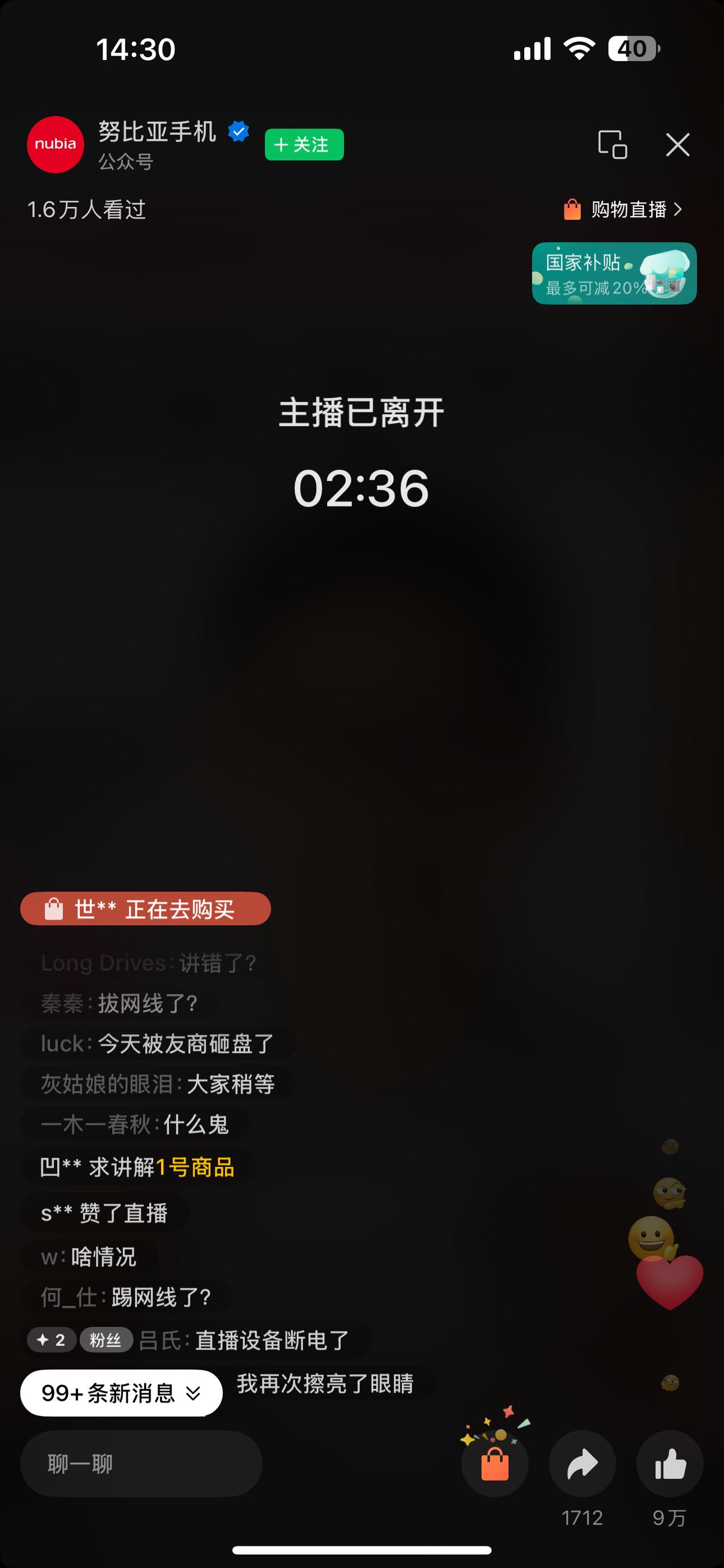 活久见,努比亚Z80 Ultra发布会翻车了,视频号的直播突然中断超过3分钟!吃瓜~