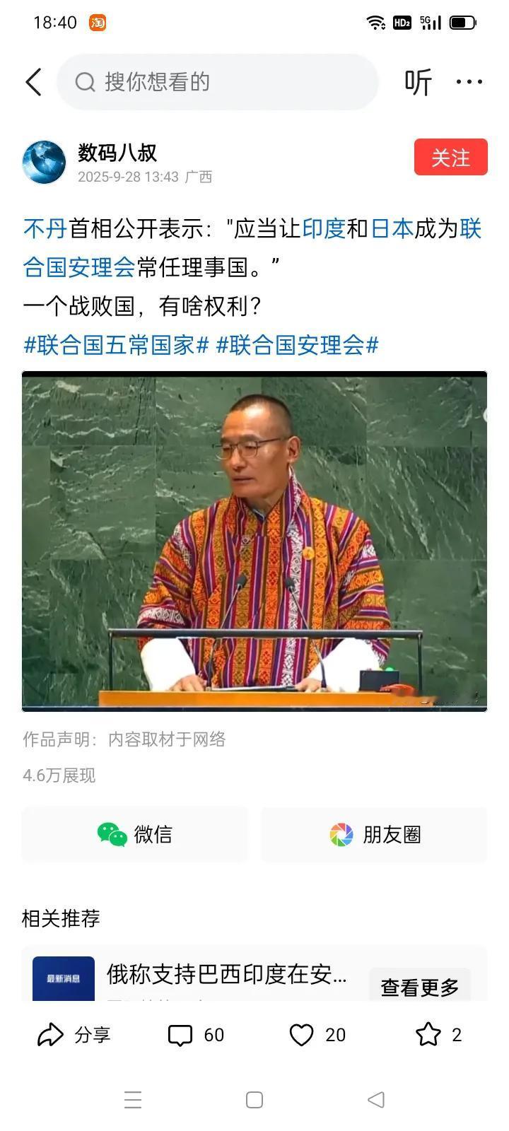 安理会常任理事国席位,绝不能鱼龙混杂、滥竽充数! *众所周知,印度和日本等国家日思夜想、处心积虑地要成为与中国 美国并驾齐驱的常任理事国! 近年来,印度的入常要求一再被五常之一一票否决了。 *现在俄国又要求把印度和巴西塞进常任理事国,貌似公正合理,实则名不正言不顺、后患无穷!可笑的是,受到印度全面掌控的弹丸之国不丹竟然也要求让日本和印度成为安理会常任理事国。 君不见,印度在上海合作组织和金砖国家组织中是如何损人利己、居心叵测, 并且破坏中国和组织权益的吗?! *联合国安理会五常,基本上是经过二战血火淬炼考验、对世界具有巨大影响力的国家。 安理会常任理事国,不是谁都可以登堂入室、滥竽充数的! 日本军国主义侵略战争曾经给亚洲和全世界造成了浩劫,它的战争罪行并没有得到认真彻底的清算,并且现在又疯狂扩军备战、面目狰狞了! 而印度只缴纳不到2%的联合国会费,并且对周边国家一直进行霸权主义政策,对于世界和平发展,有什么贡献呢?