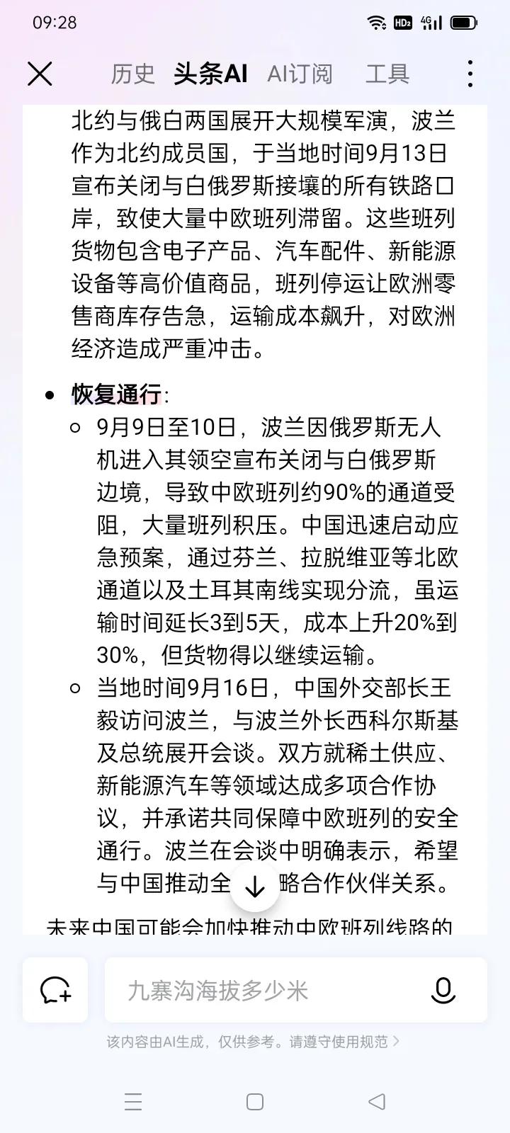 波兰浑水摸鱼 中方以德报怨 *2017年,中 欧七国达成《中欧班列合作协议》。 今年9月8日郑州至华沙班列开行。 9月13日波兰借口俄白军演,突然阻断中欧班列,迫使班列改道北欧及土耳其,成本飙升两三成! 波兰的做法完全是背信弃义、心怀鬼胎。 *9月16日中方与波兰达成合作协议,中方同意在锂电池 电动汽车 稀土材料及肉类出口等方面帮助波兰。 双方愿意维护中欧班列安全运行。 *本来中方对于锂电池和电动汽车相关技术是严格保护的,这次可能要与波兰‘分享’了!稀土材料出口及进口波兰肉类,也便宜它了。 *按理说波兰阻断中欧班列,受害者不应该仅仅是中国的卖家,难道欧洲各国的买家不着急吗? 我认为针对波兰破坏中欧经贸合作的行为,中方可以要求欧洲各国出面解决。同时在中欧经贸和中欧班列的规则上,双方应该风险与利益共同承担,不能总是让中方吃亏!