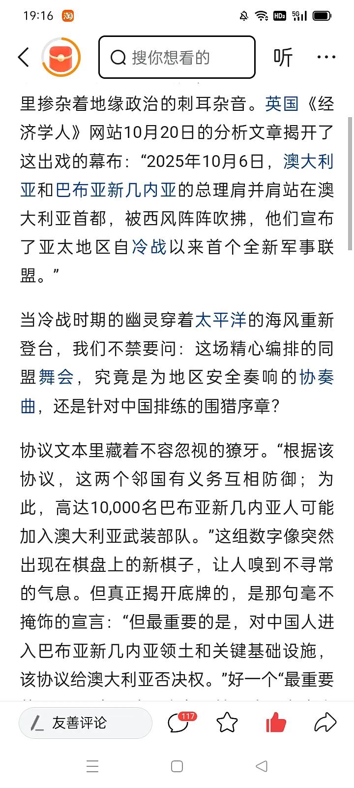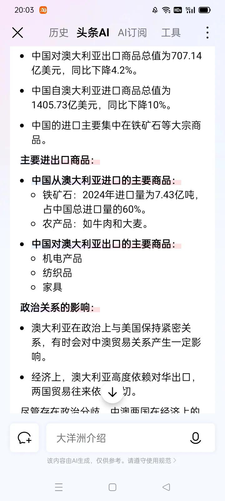 南太土鳖澳大利亚,反华不遗余力! *土澳的军机又悍然入侵中国西沙领空,中方专家严重警告说‘澳国持续挑衅侵犯中国主权,如果引发两国的军事事故,责任完全在澳方’! *10月6日土澳与巴布亚新几内亚了军事同盟国条约,竟然规定‘中国人进入巴新国内或者参与巴新重要基础设施建设,澳国对此拥有否决权’!充分表明土澳和巴新对中国的恶意满满。 巴新简直成了土澳的半殖民地了。 *土澳刚刚与美国合作建立百吨级稀土镓冶炼厂,川普吹嘘说明年美国的稀土材料多的用不完了! 土澳作为五眼联盟急先锋,前两年还要购买核潜艇,并且一直大力购买美国 日本 欧洲 韩国等等国家的武器装备,野心勃勃。而它心目中的‘敌人’几乎就是中国! *中国其实是土澳的财神爷!去年土澳对中国的贸易顺差近700亿美元。中国购买了它的7.43亿吨铁矿石和大量的牛肉和粮食。 而中国钢铁行业存在严重的产能过剩!现在中国钢铁业的平均利润率才2%,并且印度和越南的钢铁产品也挤压了中国产品的出口市场。