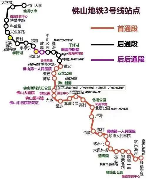 佛山地铁3号线全线开通意义重大。 佛山地铁3号线是一条贯穿顺德、禅城、南海三区