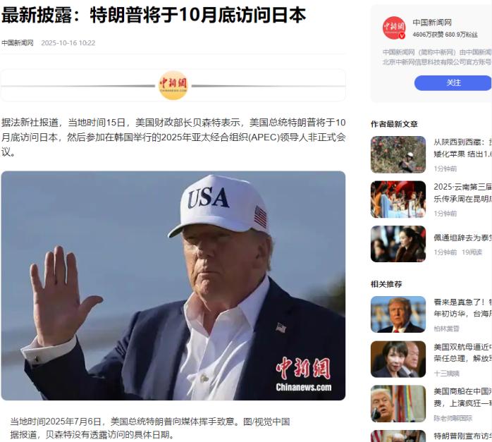 特朗普终于官宣访日行程,他对媒体表示,将于近期“前往日本”,是他第二任期首次亚洲
