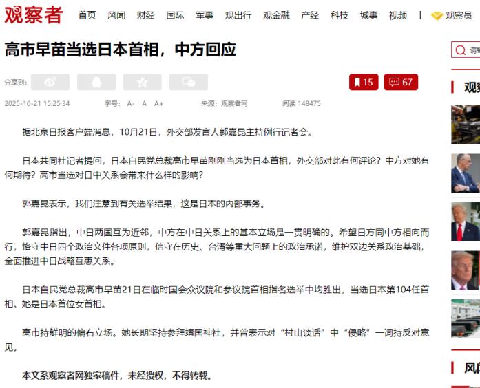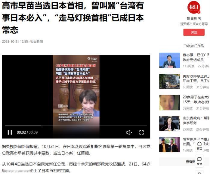 21日,高市早苗刚当首相,就一口气做出3个指令,全都涉及中方安全! 据共同社