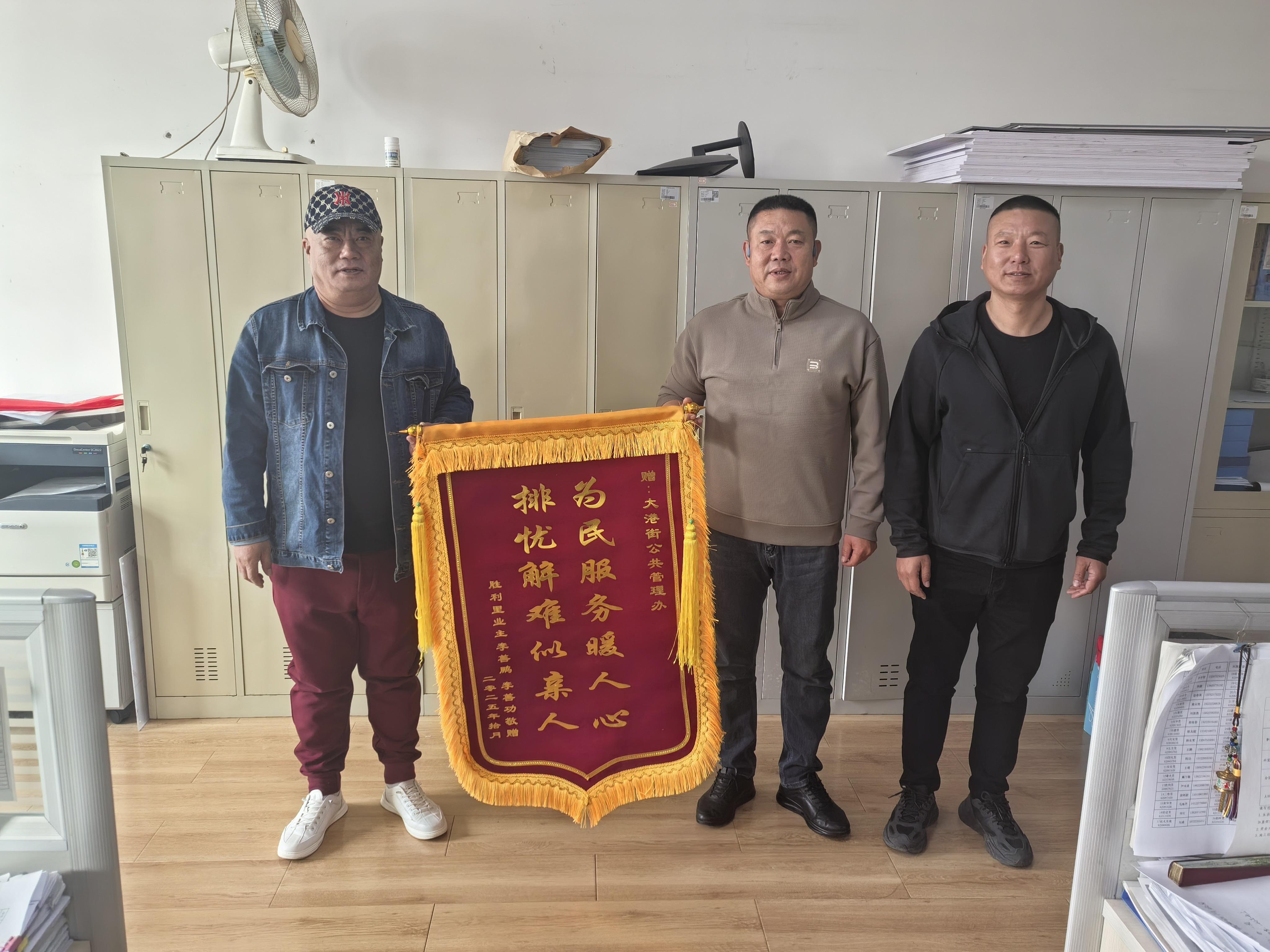 仪式结束后,李善鹏、李善功兄弟将一面写有“为民服务暖民心排忧解难似亲人”的锦旗,交到了大港街道公共管理办和社区工作人员的手中。这面锦旗不仅表达了居民最质朴的谢意,更见证了这段历时二十载终于圆满的民生故事。“这面锦旗,代表了我们全家人的心意。”李善鹏握着工作人员的手激动地说,“这二十年,你们是真正把我们老百姓的事放在心上的亲人!”