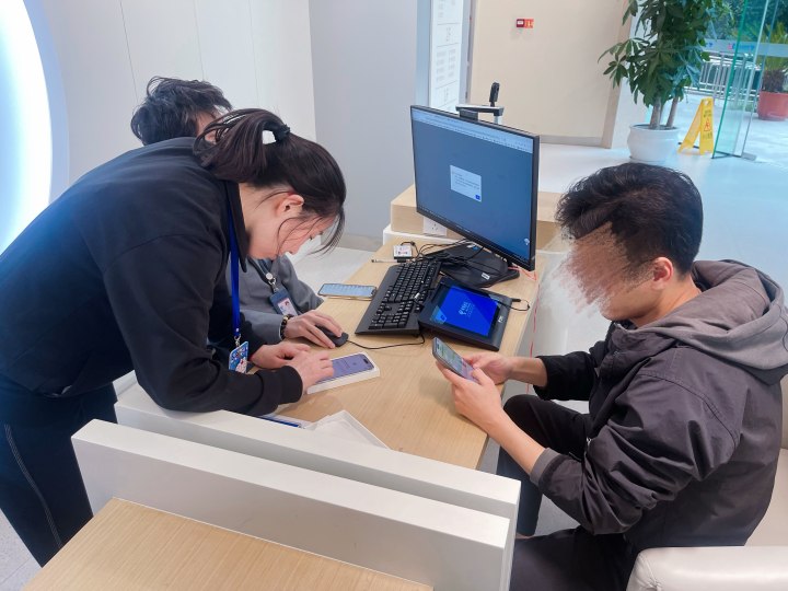 据记者了解,目前杭州的电信营业厅都可以办理iPhoneAir相关eSIM业务,用户只需携带有效证件和苹果Air终端前往即可。办理流程中,电信的工作人员会先对手机进行“三码合一”验证,确认设备合规后随即启动业务办理,全程大约5-6分钟。如果忘记携带手机包装盒,也可现场通过在手机拨号页面输入“*#06#”,直接调取所需的三个编码,不影响验证与办理进度。