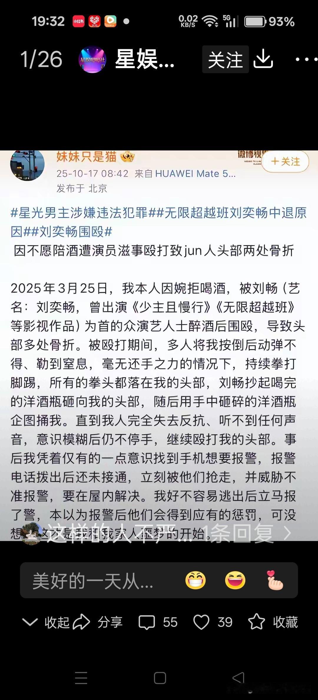 喝醉酒的某艺人连军人都敢打最让人气愤的不是没立马关押而是在关押期间的刘奕畅团