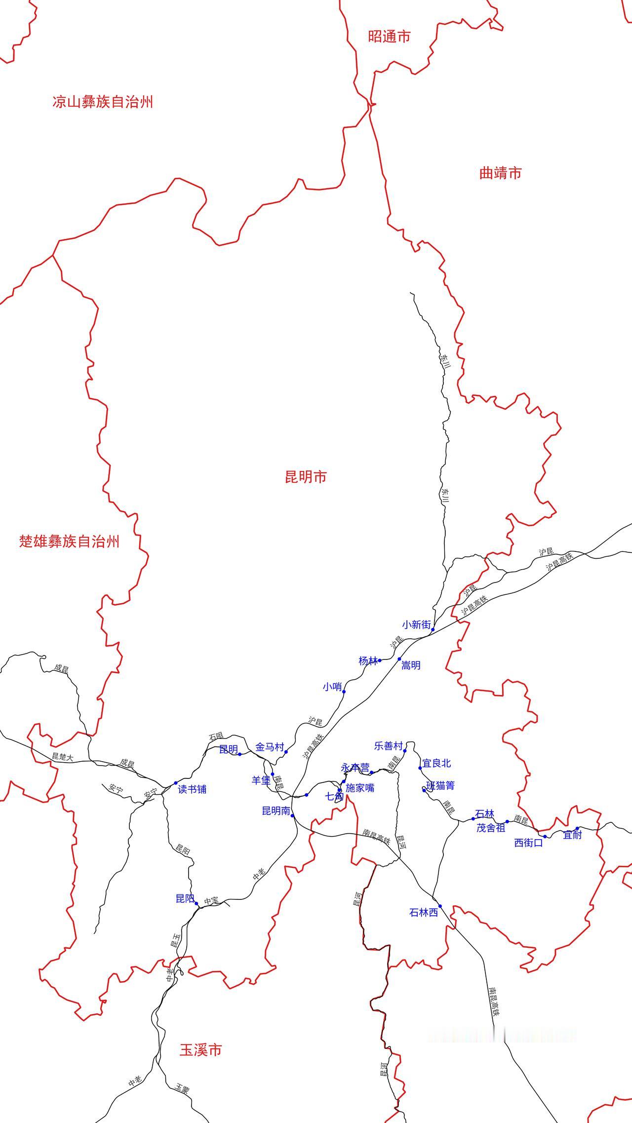 云南省昆明市铁路及客运站分布图 根据铁路12306数据,云南省昆明市目前有以下2