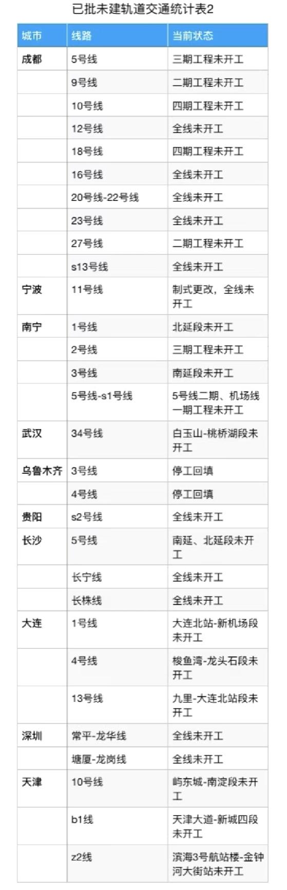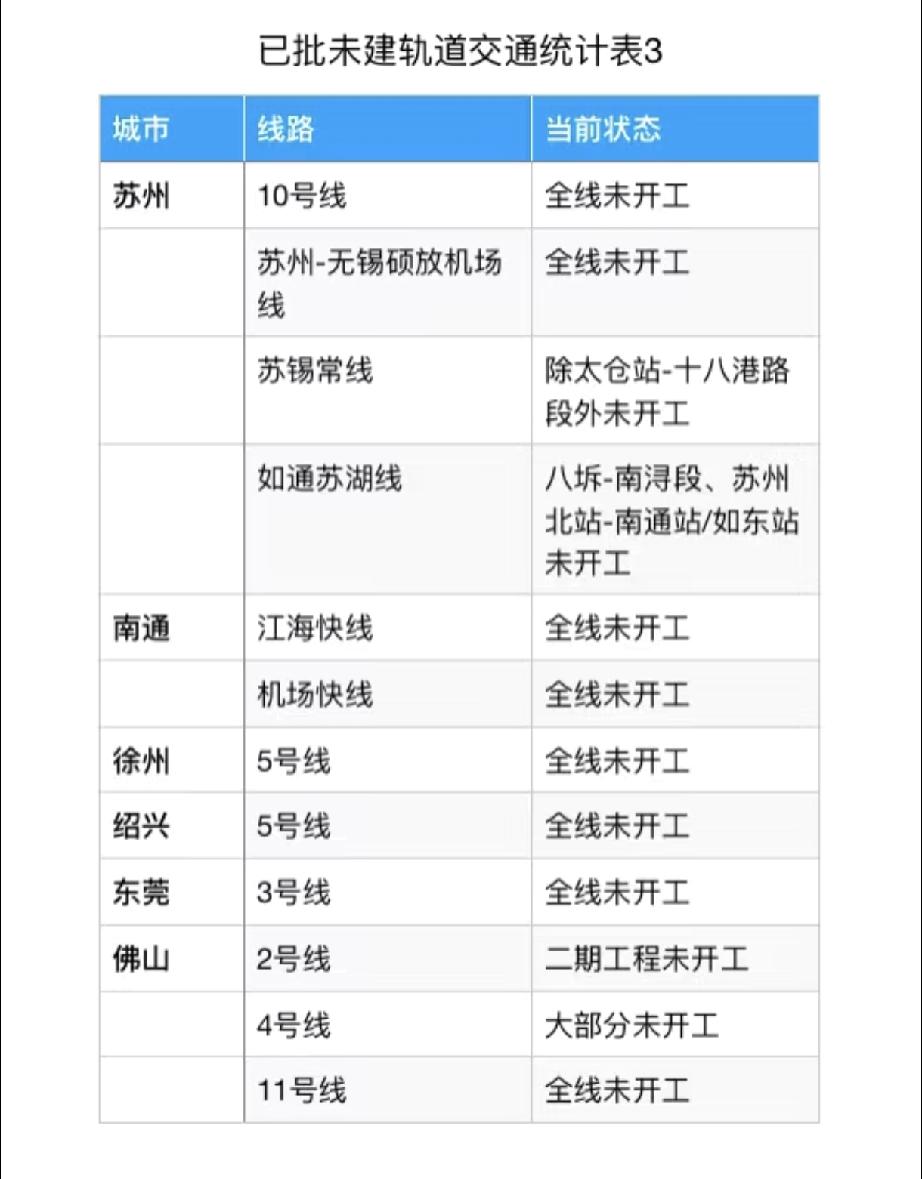 全国已批未建轨道交通统计! 随着城市轨道交通审批政策调整,全国大量已批未建轨道交通项目可能面临重新审查,单个城市中北京、成都等地未开工线路数量最多! 不过还是有值得激动的地方,现在多地都开启新一轮地铁规划报批,比如合肥就有5个拟建设项目,线路总规模约115公里,成都也在力争年底前获批第五期建设规划,西安也启动四期规划研究! 你们所在的城市轨道交通线路图如何?都有没有相关规划呢?快来评论区分享分享! 希望大家所在的城市未来的地铁网络都能更上一层楼!轨道交通 已批未建 地铁规划