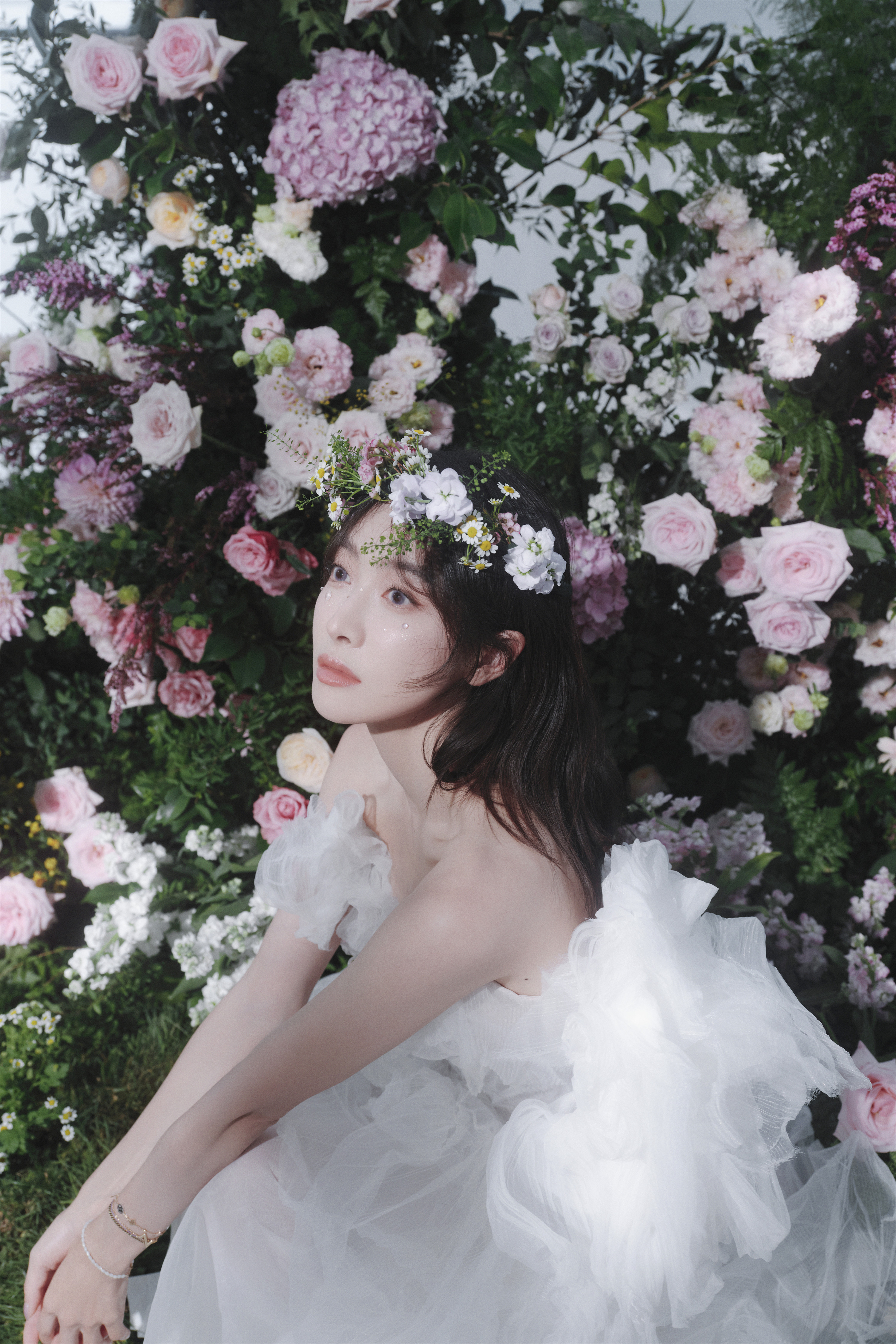 宋茜:洁白婚纱,梦幻花园,优雅绽放