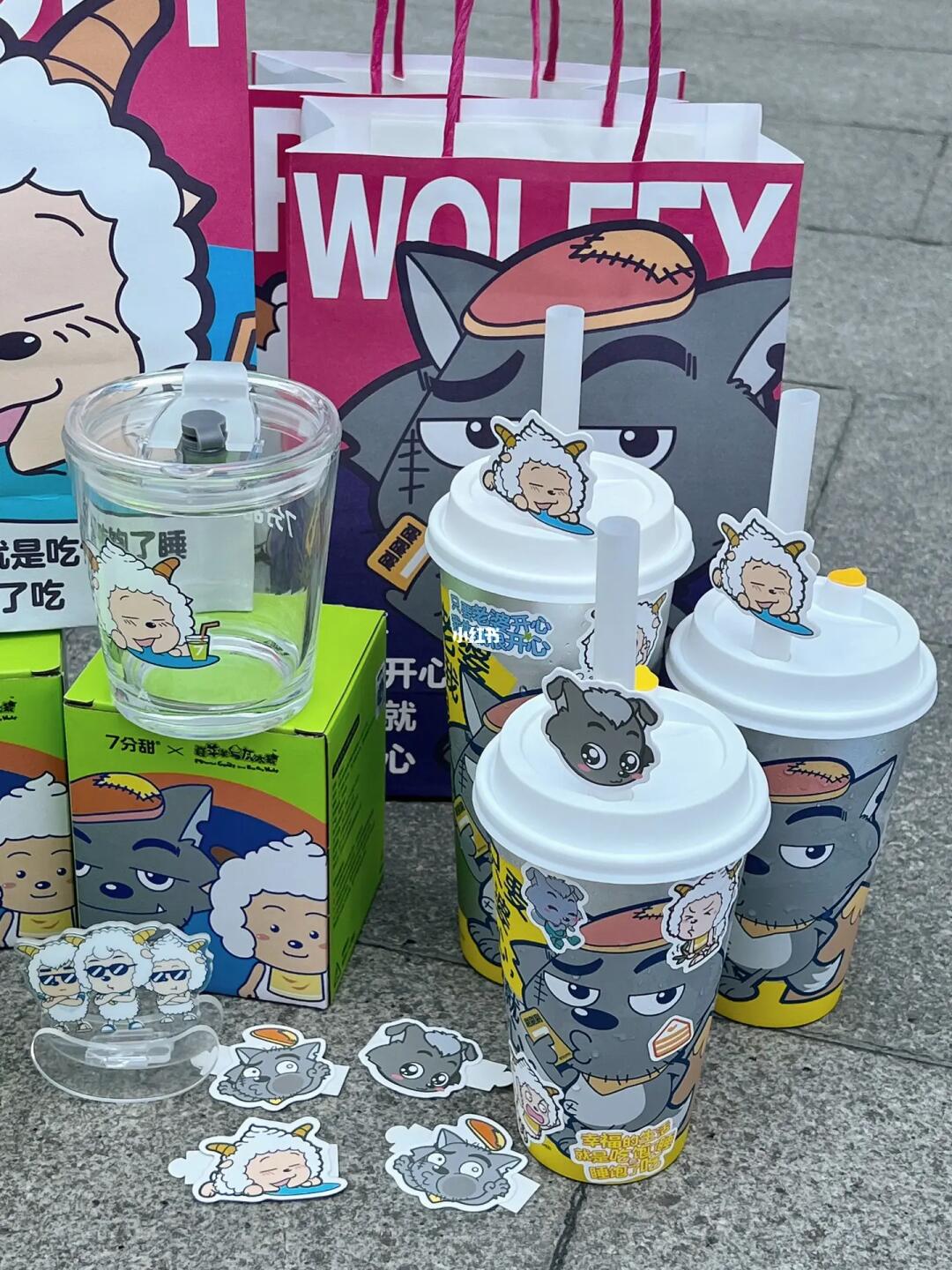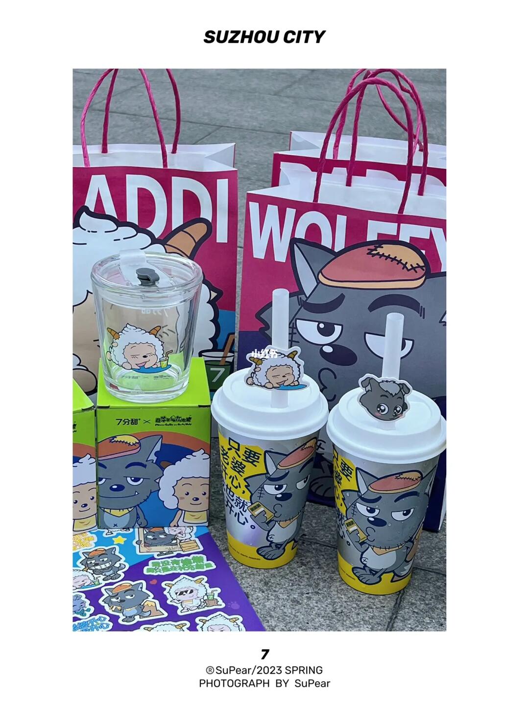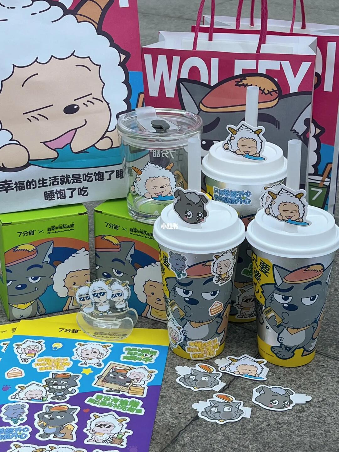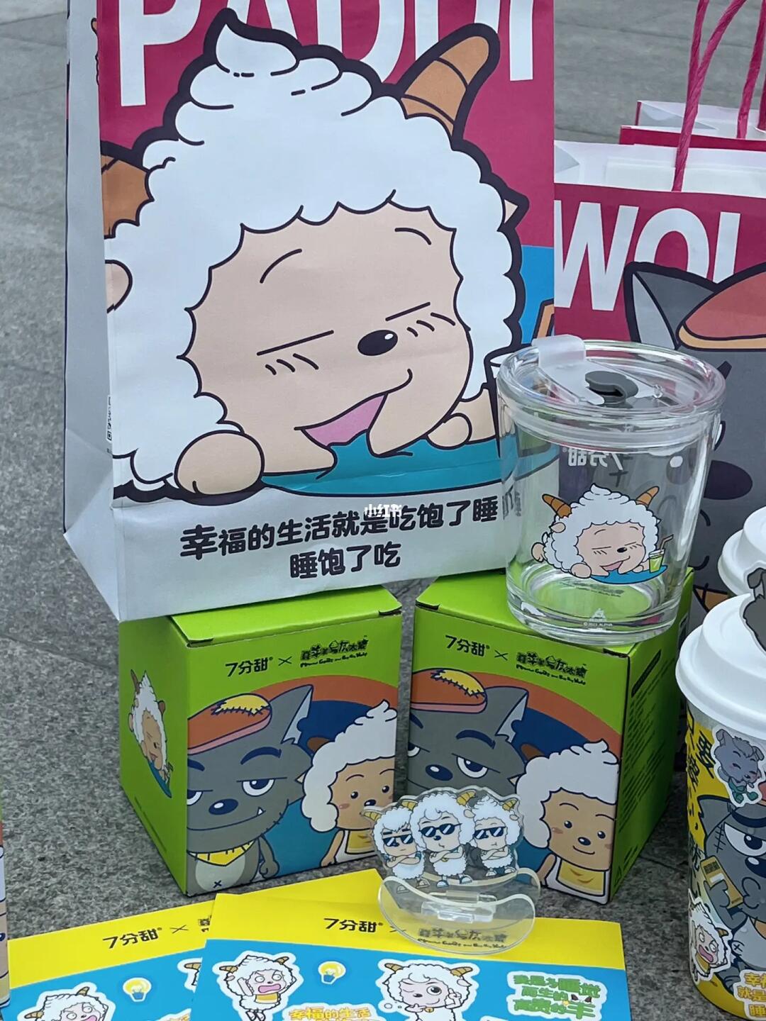 不仅涵盖了杯套和主题纸袋,还有亚克力摇摇乐、贴纸、限定玻璃杯等周边,全都是童年记忆里的青青草原。又可爱又好玩的羊羊们,谁不想集齐一整套!