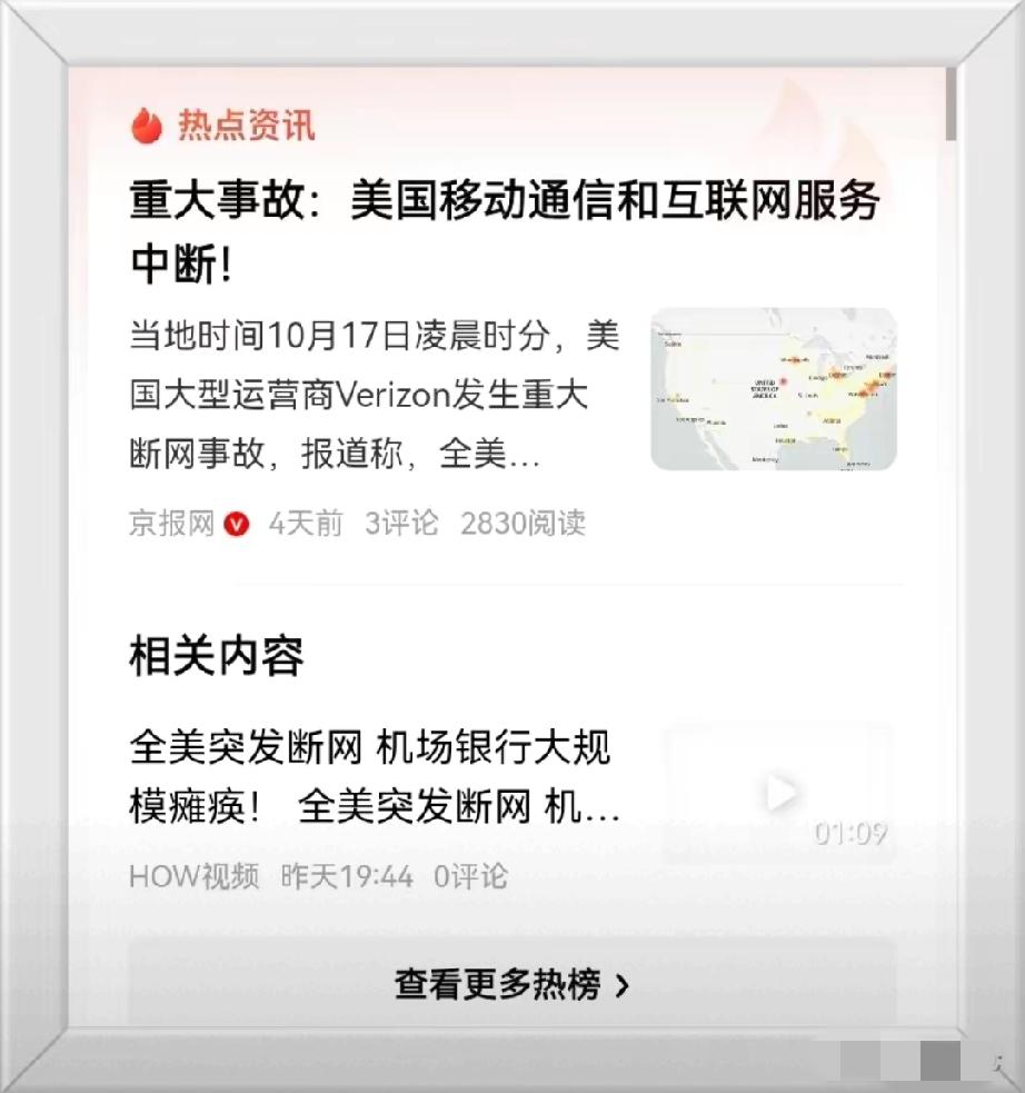 美国也断网了?这就叫天道好轮回! 昨天刷到美国大面积断网的消息,说实话,心里有点暗爽!购物平台全瘫,手机电脑变砖,可把他们吓得不轻。 为啥说这是报应?因为他们之前刚攻击过我们的授时中心,幸亏咱们防得好没吃亏。这就好比一个总在街上使绊子的人,终于自己摔了个大马趴! 老美以前总觉得自己在网络上是天王老子,想黑谁就黑谁,制造病毒全球捣乱。这下好了,也尝尝网络瘫痪的滋味。不管是谁干的,都狠狠打击了它的嚣张气焰。 所以说,人呐,真不能太霸道。坏事干多了,迟早轮到自己不得安生。这就叫天道好轮回,苍天饶过谁!
