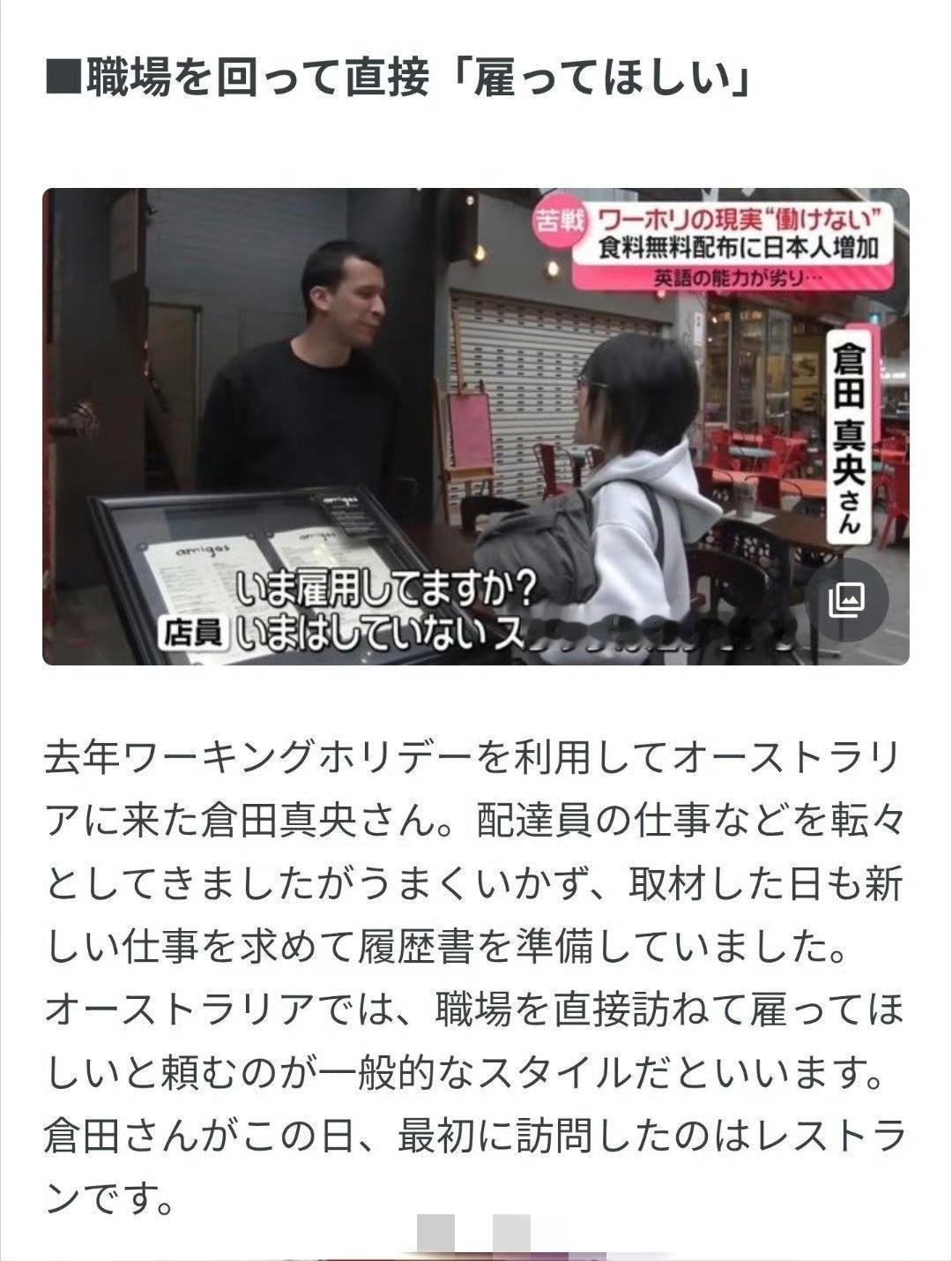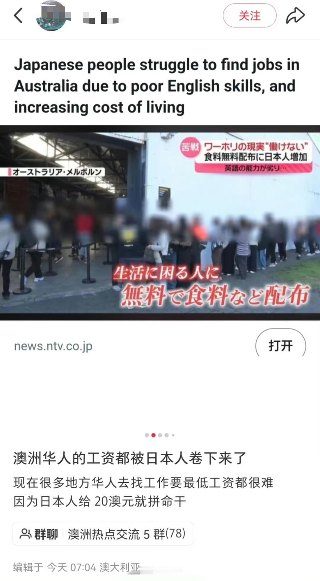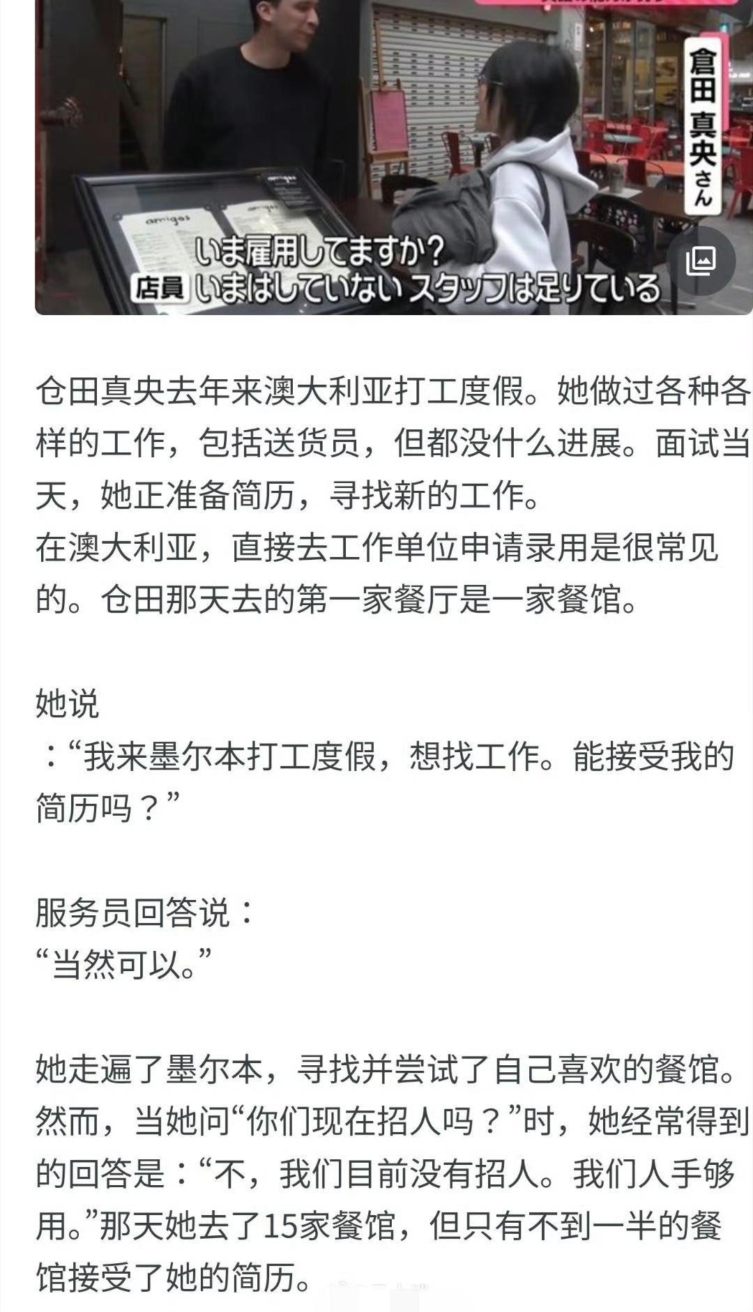 澳洲华人称“工资都被日本人卷下来了,现在很多地方华人去找工作要最低工资都很难,因